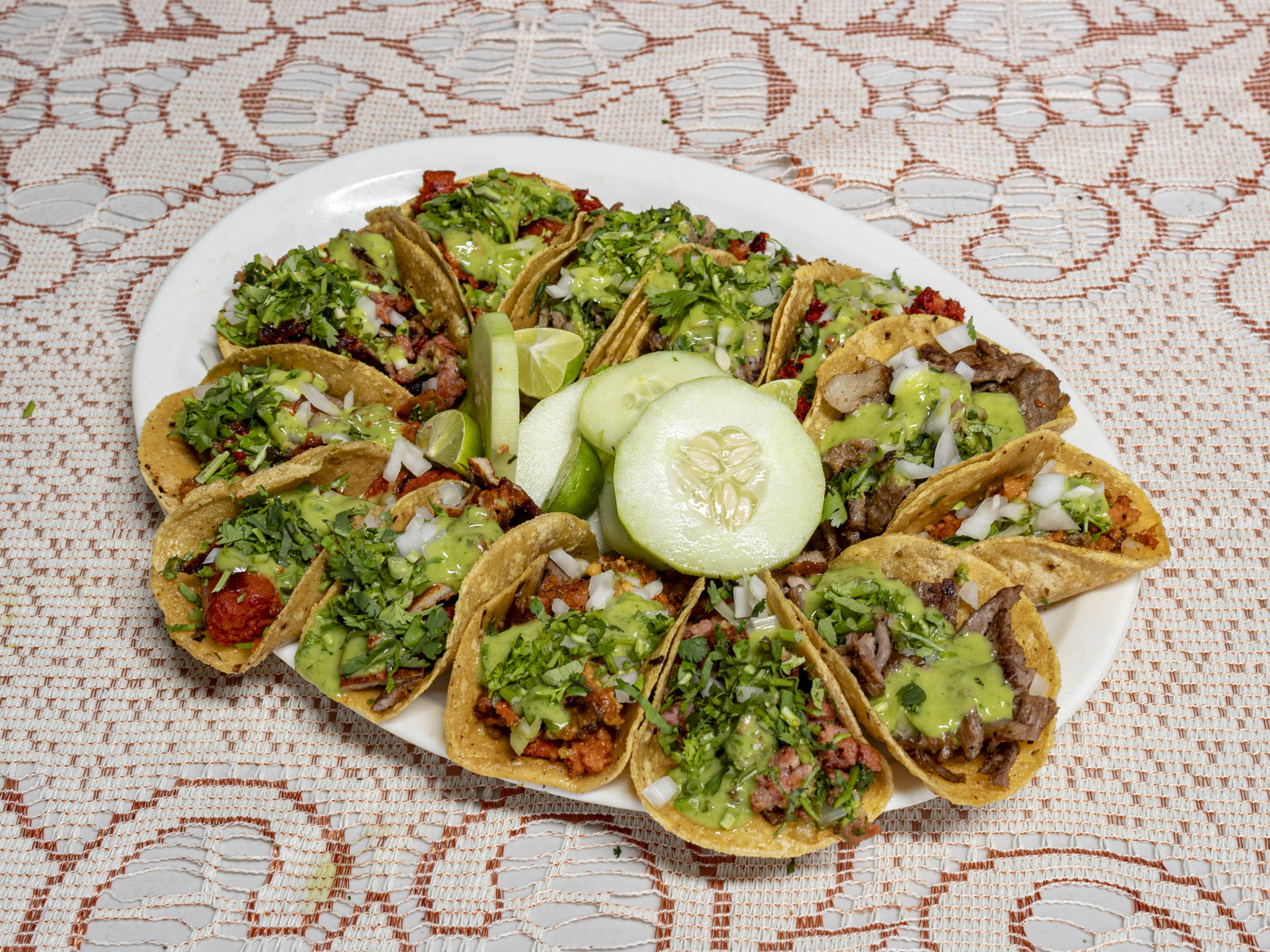 Taco de Suadero*2 + Taco de Arrachera*2 + Taco de Carne Enchilada*2 + Taco de Asada*2 + Taco de Longaniza*2 + Taco de Bistec*2 + Taco de Chorizo*1
