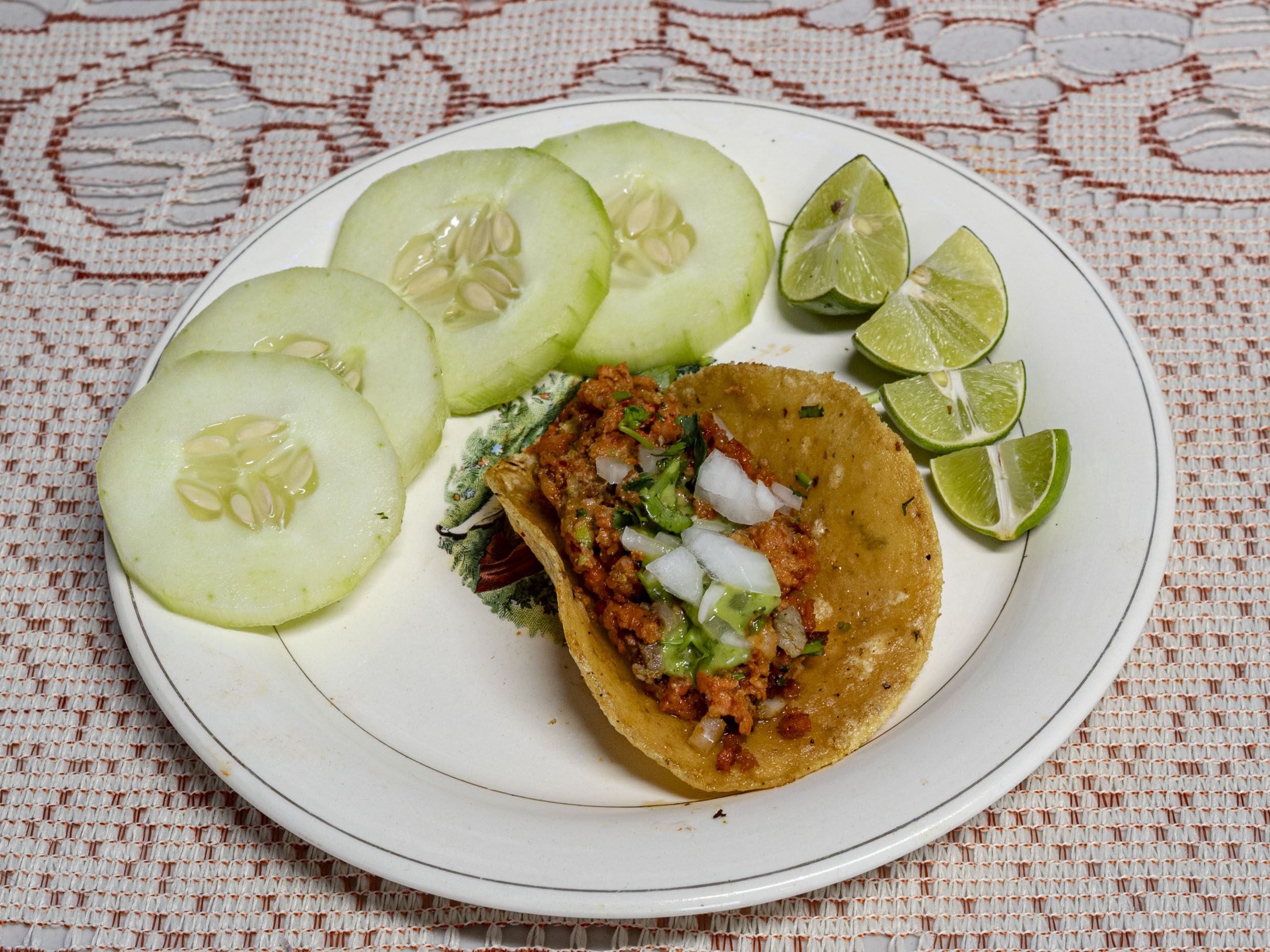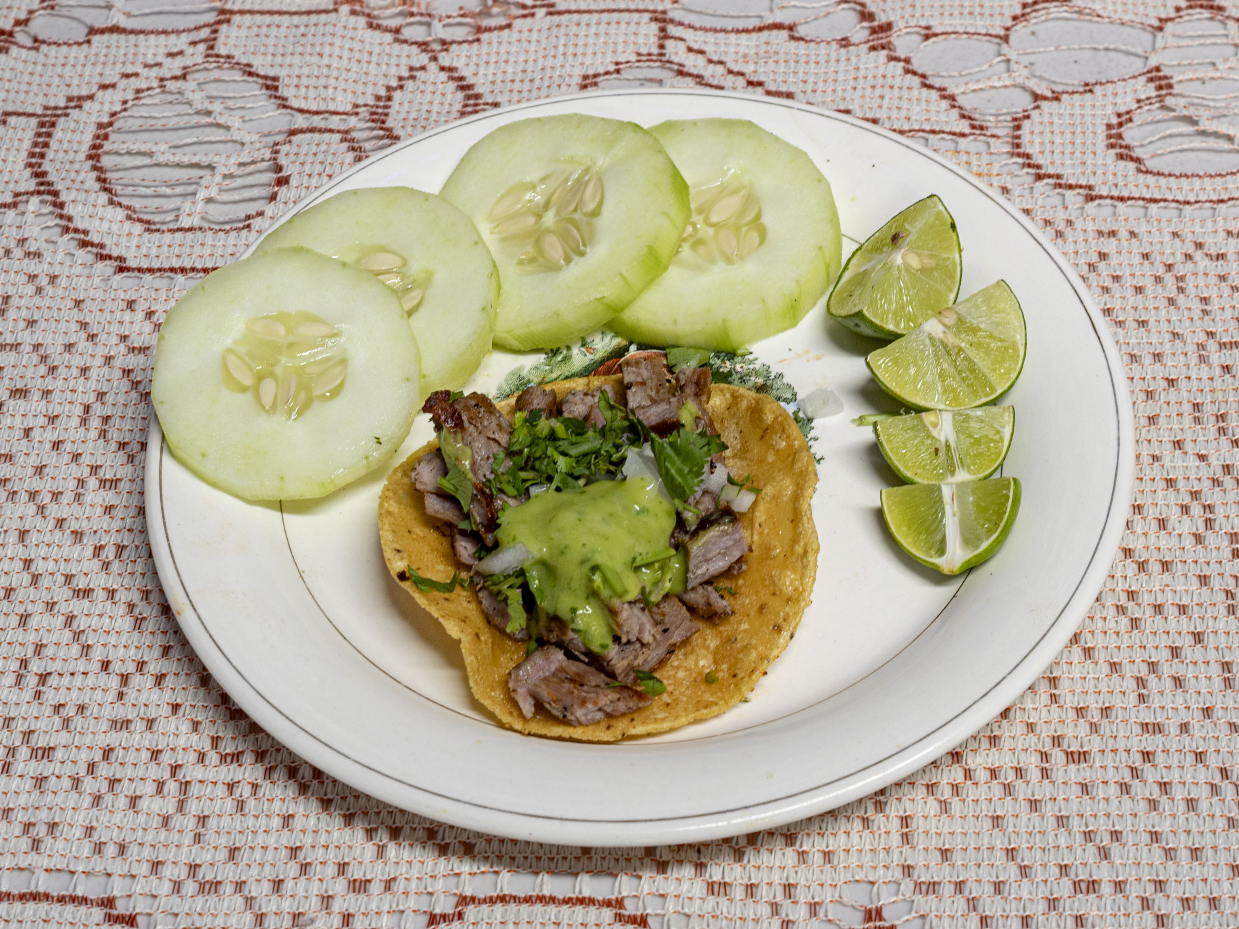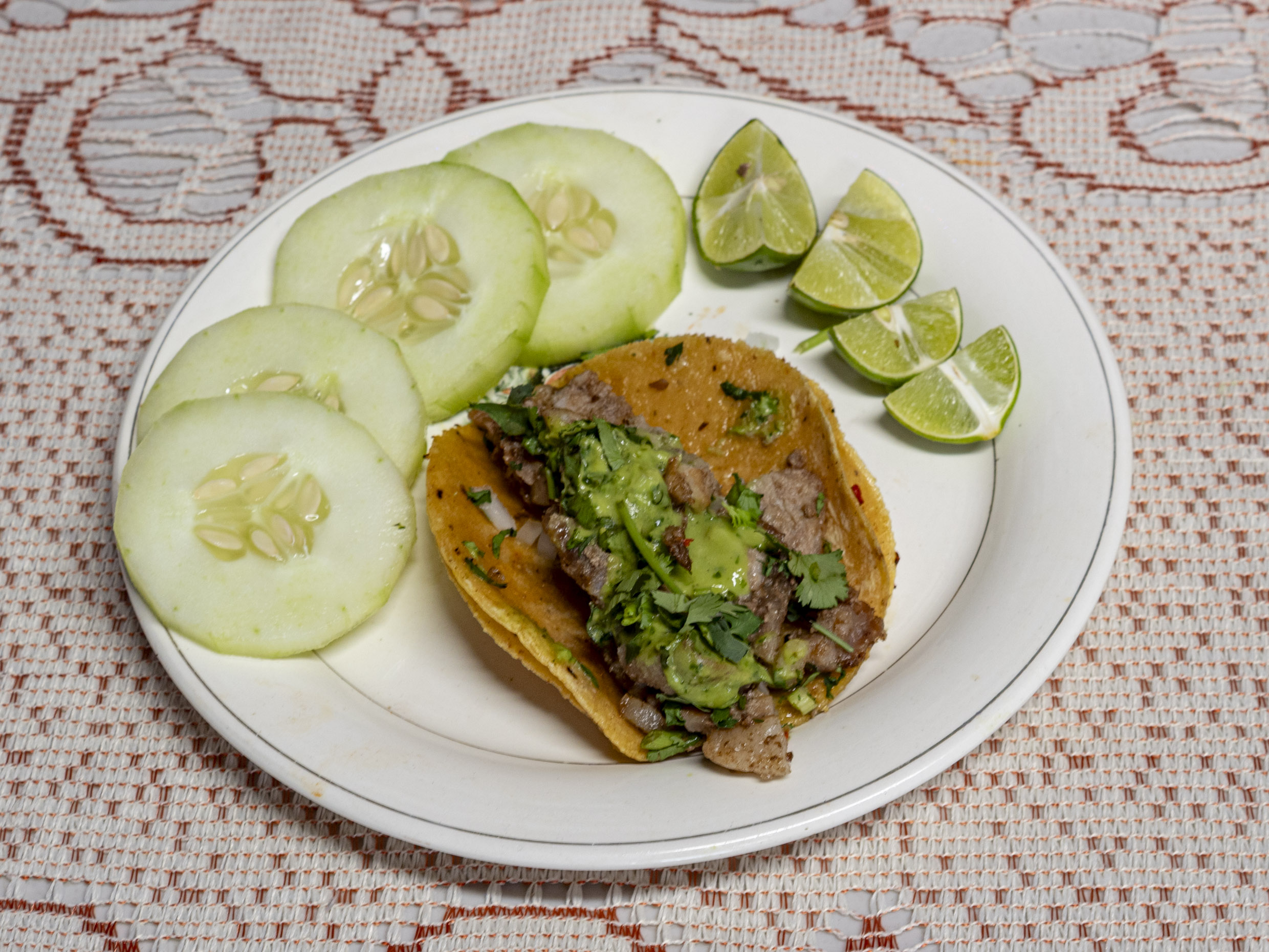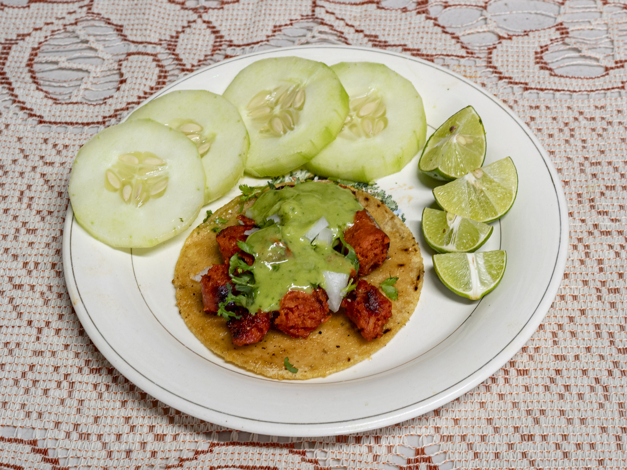 1 Taco 70gr acompañados con verdura, limones, guacamole y salsa de la casa.