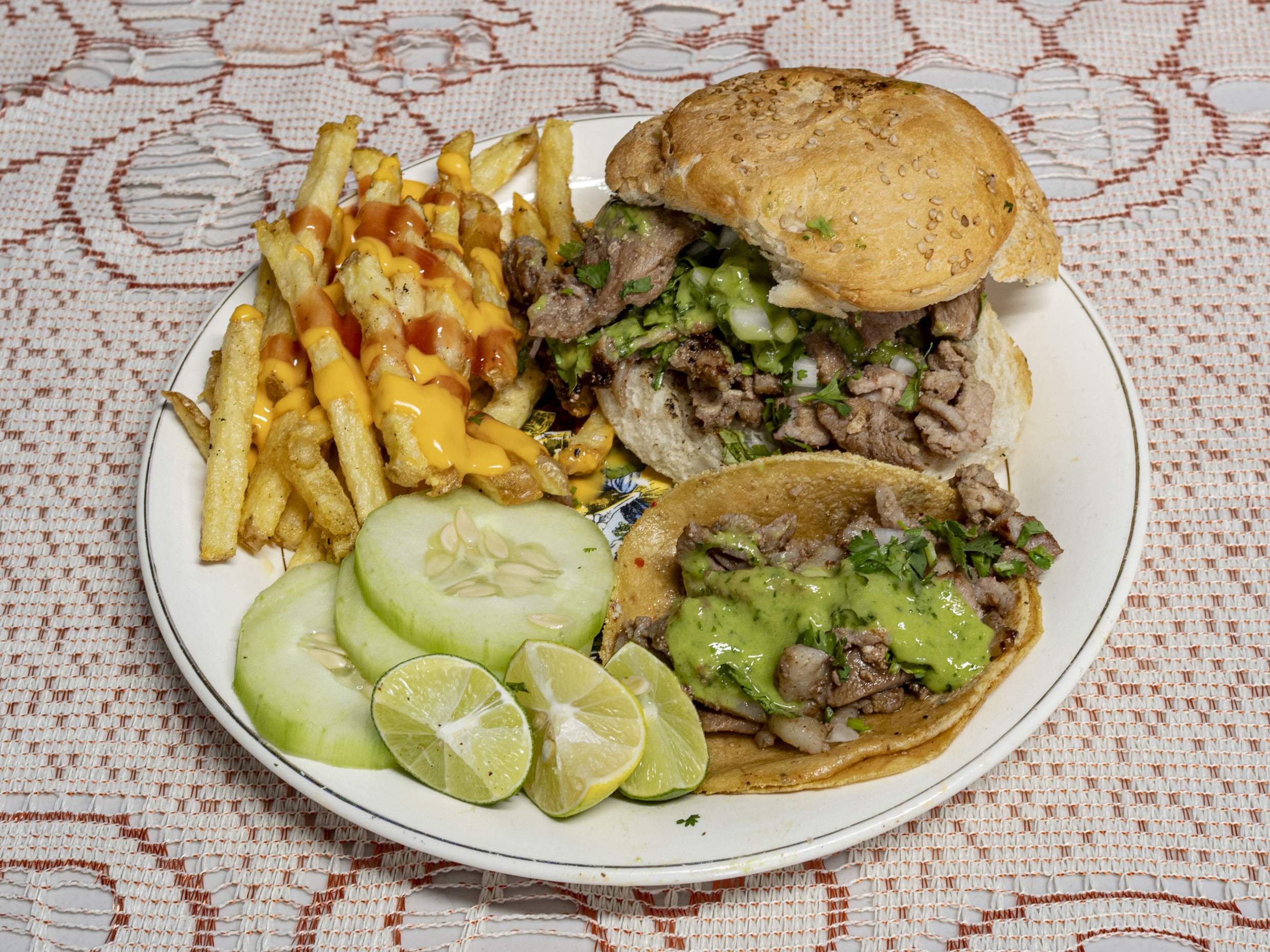 Combo #4 👑: 1 Taco + Cemita + Papas a la Francesa