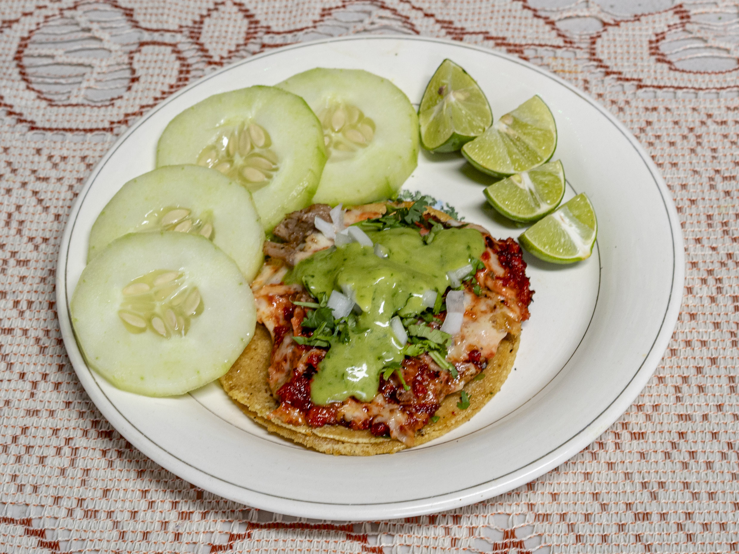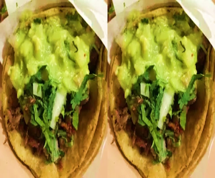 Dos tortillas de maíz con exquisito chorizo cebolla cilantro y guacamole