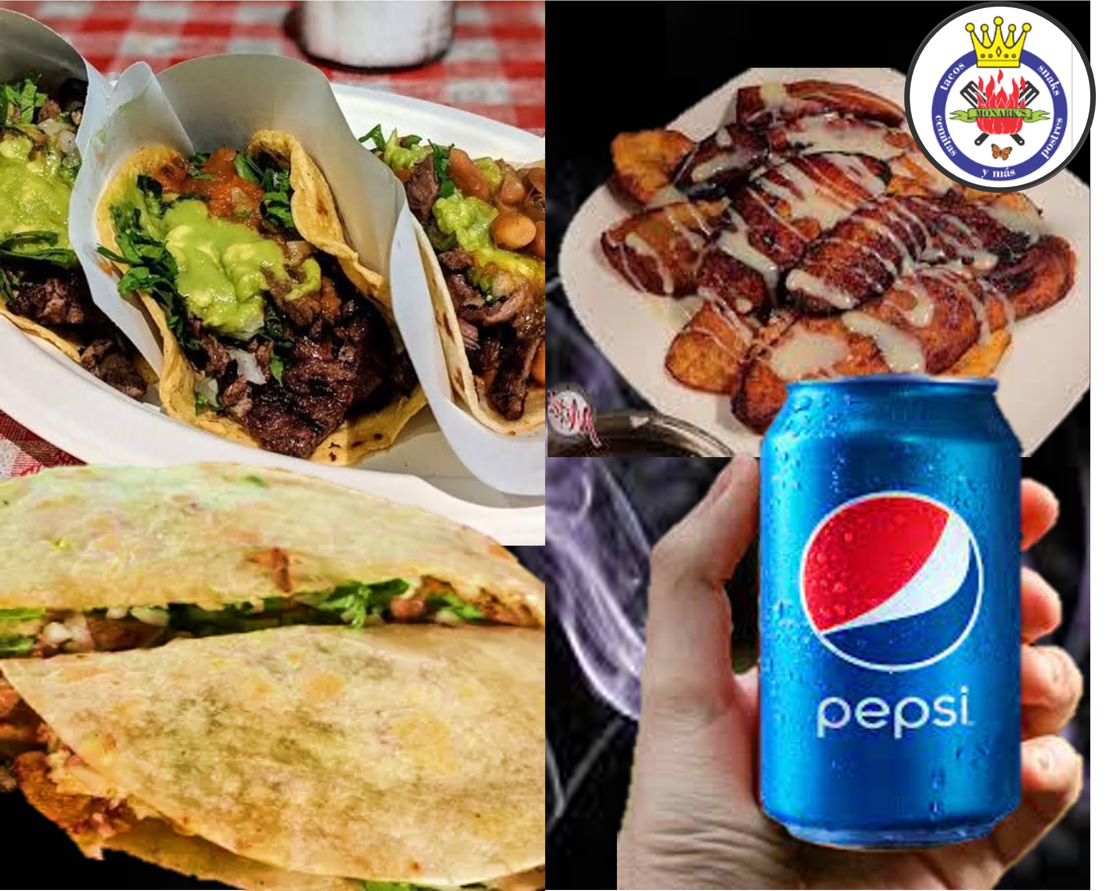 Taco de Asada*3 + Gringa a la Parrilla*1 + Refresco de Sabor Linea PEPSI*1 + Plátanos Fritos*1