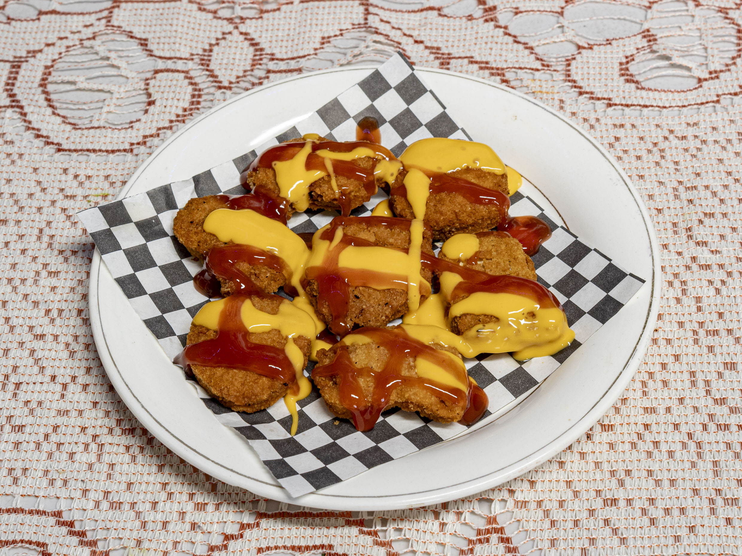 Orden de 7 Nuggets de pollo empanizado con catsup o aderezo a elegir
