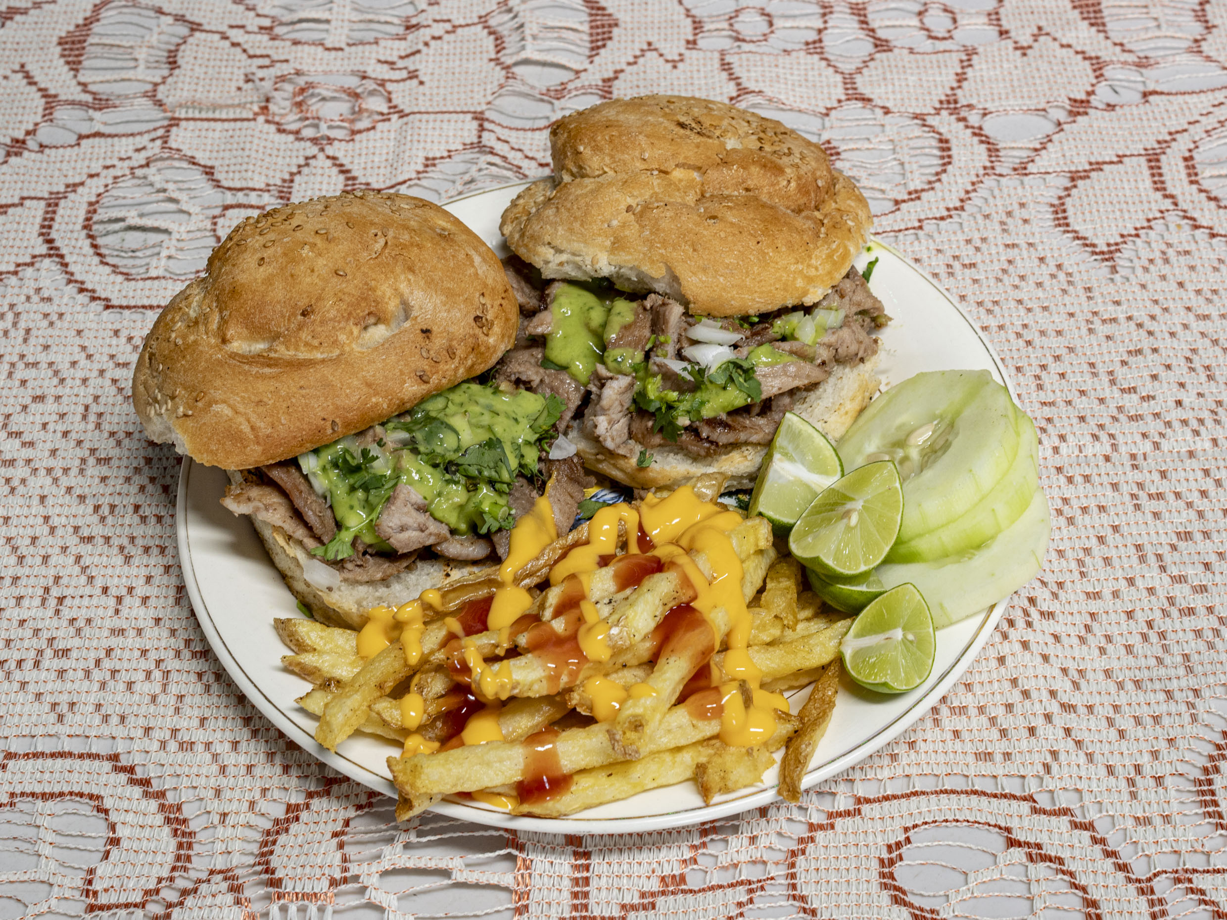 Cemitas de Asada (Pan, carne, cebolla, cilantro y guacamole) 🔥🔝*2 + Papas a la Francesa*1 .