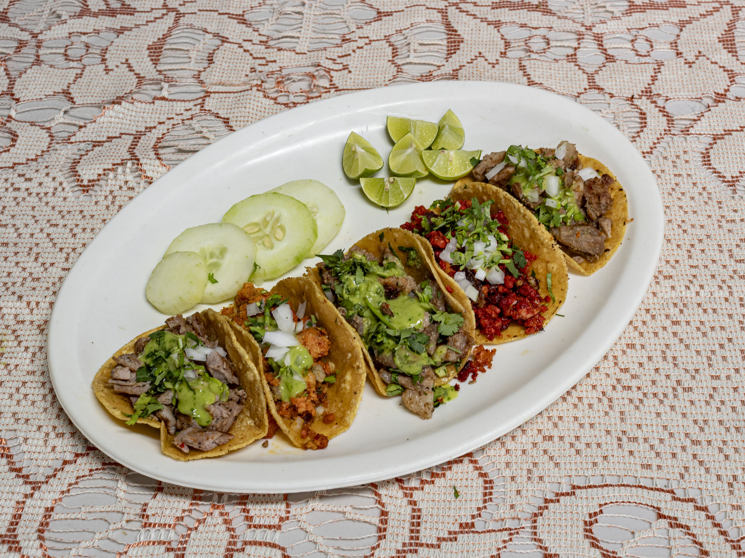 Taco de Arrachera*1 + Taco de Asada*1 + Taco de Longaniza*1 + Taco de Bistec*1 + Taco de Chorizo*1