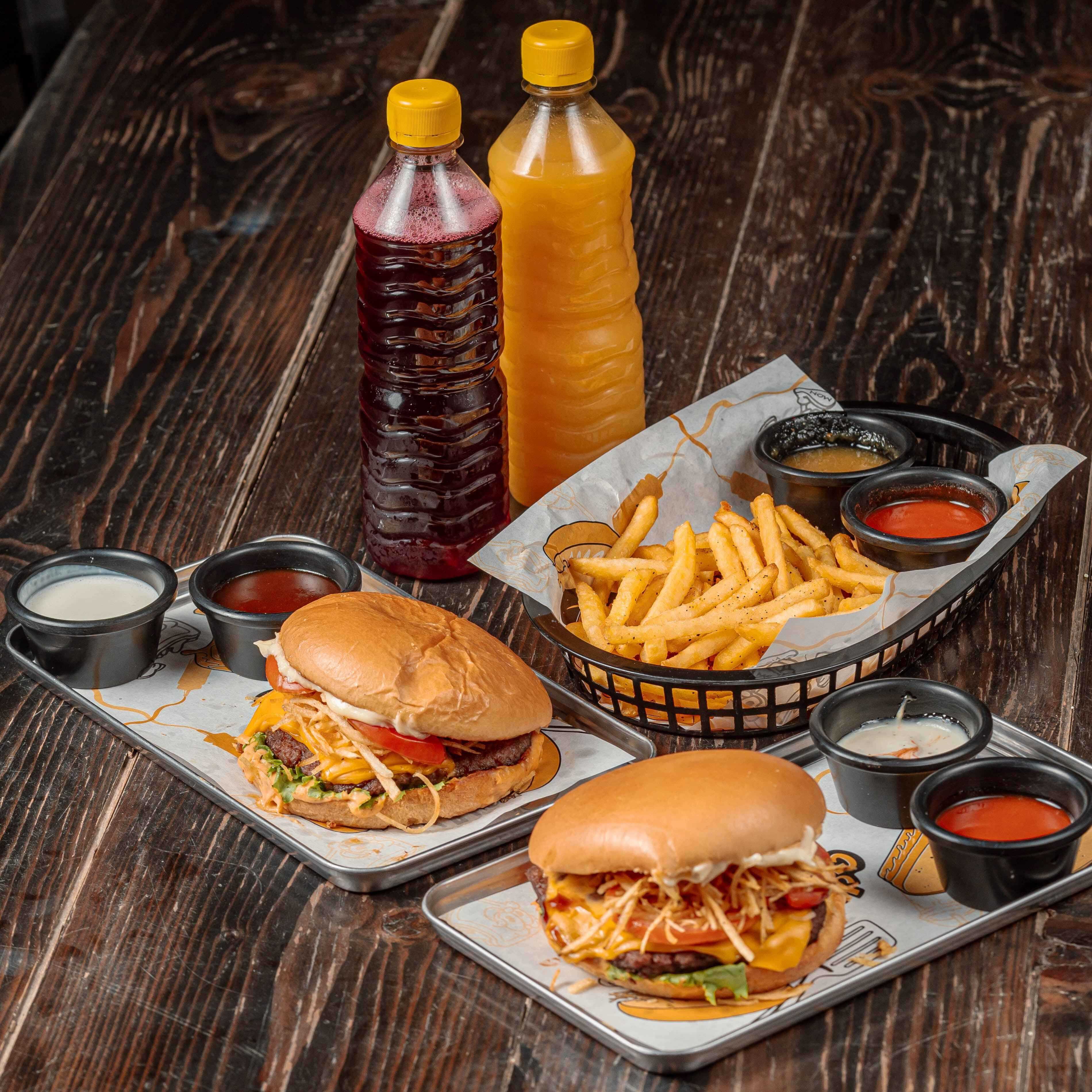 HAMBURGUESA CON DOBLE PORCION DE 120 GRAMOS DE CARNE RELLENA DE QUESO 100% DE RES, PAPA PAJA, REBANADA DE QUESO Y ADEREZO ESPECIAL. INCLUYE UN EXTRA GRATIS Y DOS ADEREZOS A ELEGIR.