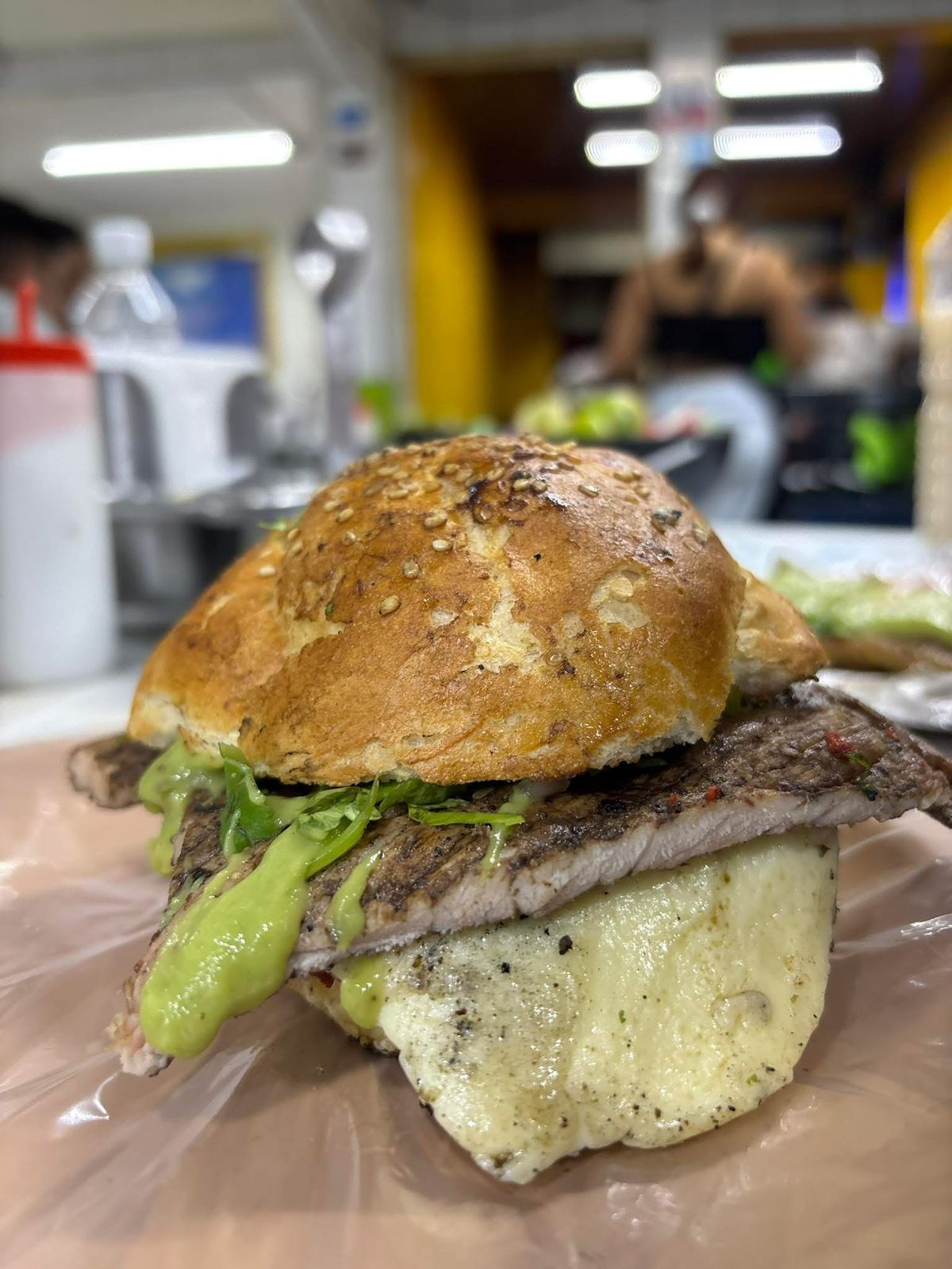 Cemita de arrachera, con su dosis perfecta de guacamole cremoso.
