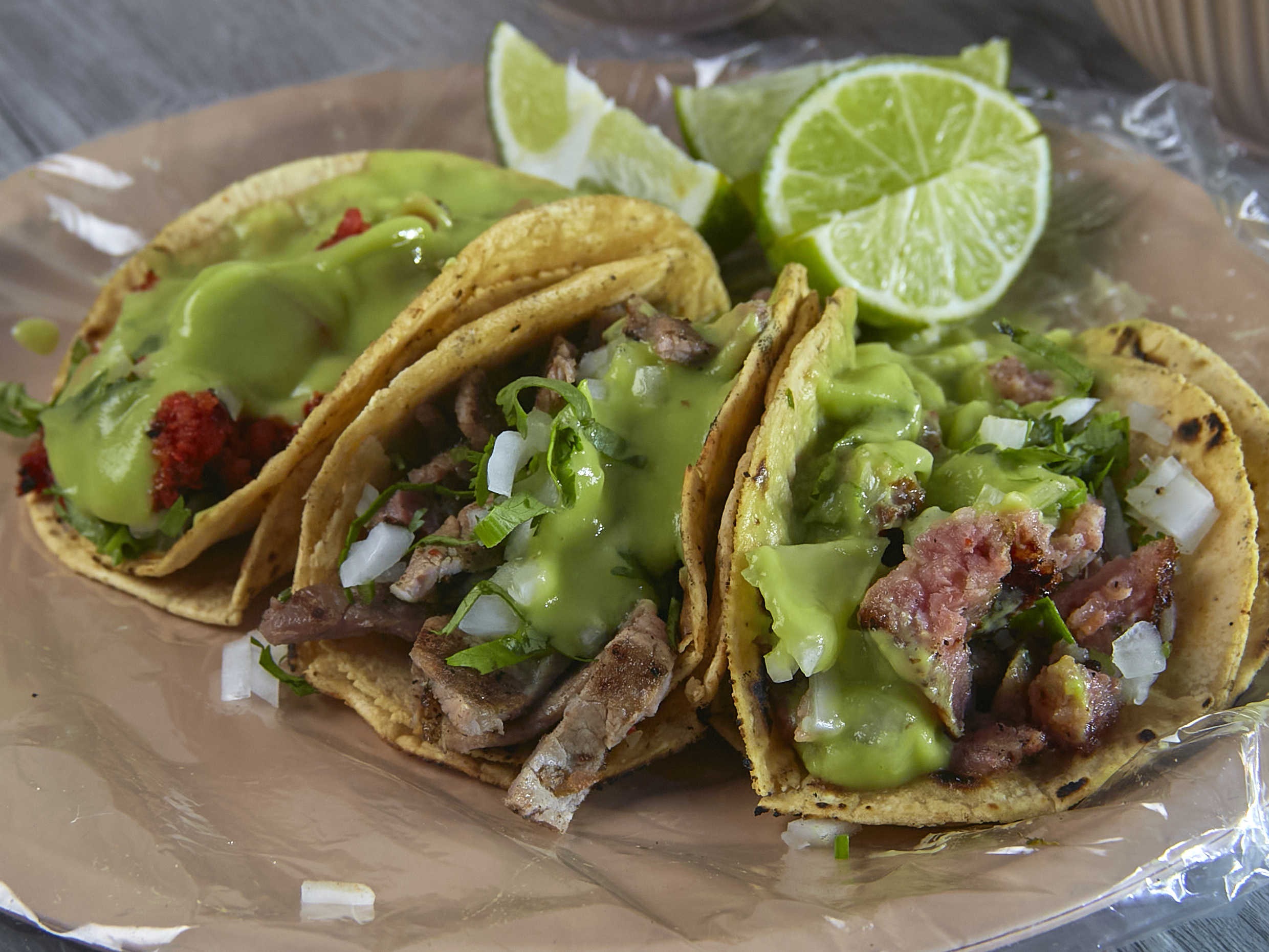 Taco de carne a elegir, con su dosis perfecta de guacamole cremoso.