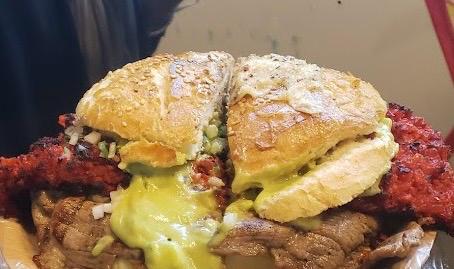 Cemita extra grande con doble porción de carne a elegir, queso, verdura fresca y guacamole cremoso.