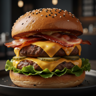 Pan artesanal, 160 g de carne premium de res y cerdo gratinada con quesos mozzarella y cheddar, tocino doradito, pepinillos y aros de cebolla, todo bañado en salsa BBQ con un toque picante.