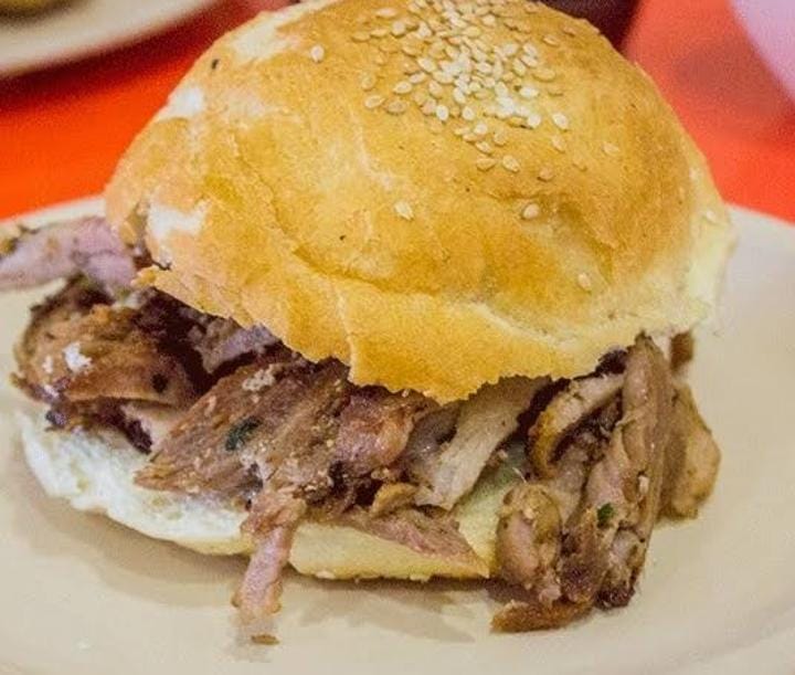 Pan de cemita, carne árabe, salsa a elegir roja o verde.