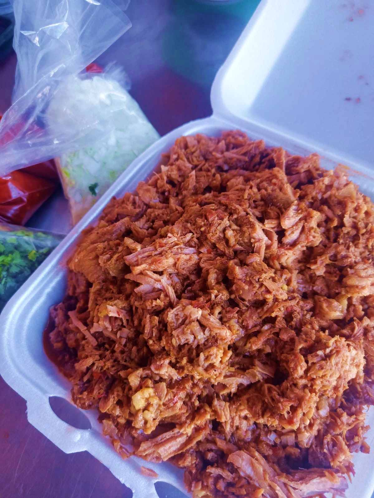 Medio kilo de Cochinita Pibil, incluye tortillas de maiz, cebolla curtida y salsa de habanero.