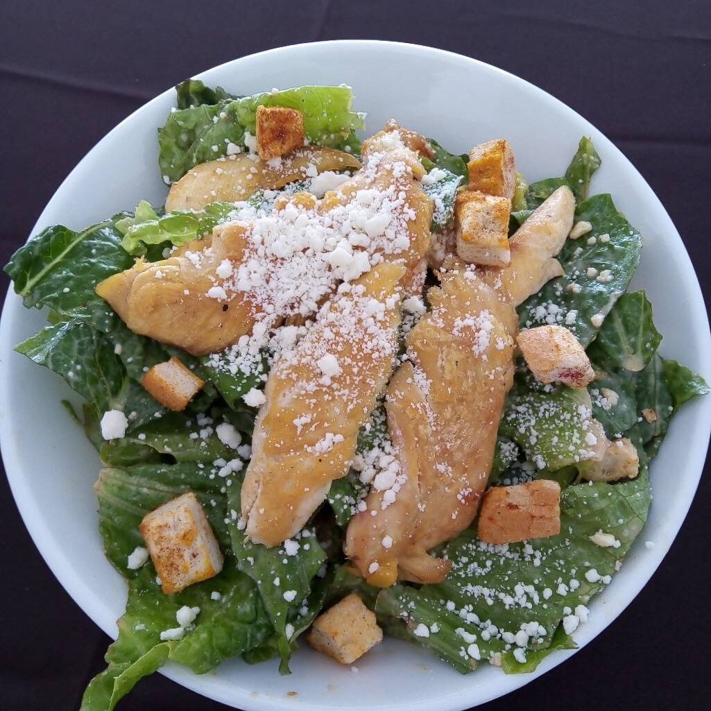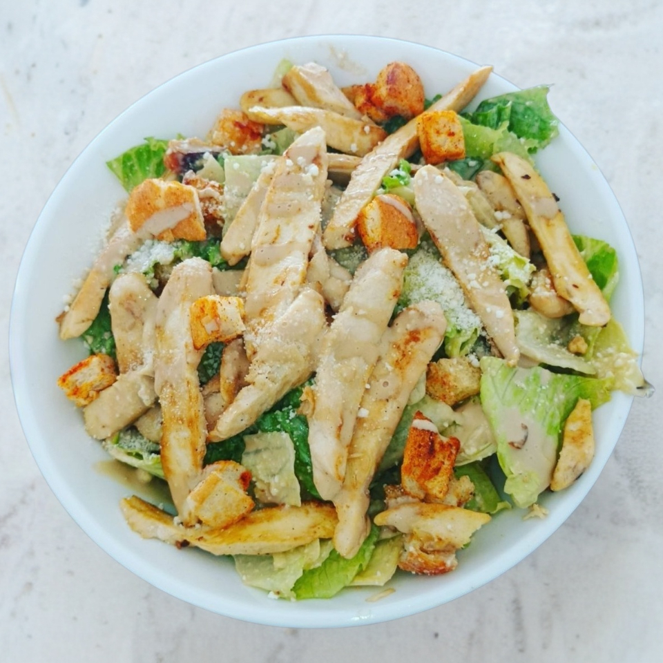 Lechuga romana, queso parmesano, pollo a la plancha y aderezo césar de la casa.