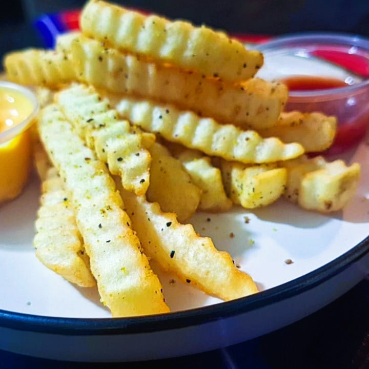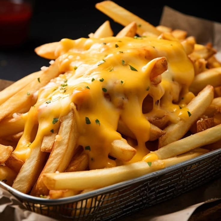 220 gr de papas corte ondulado, queso fundido y 1 aderezo a elegir aparte