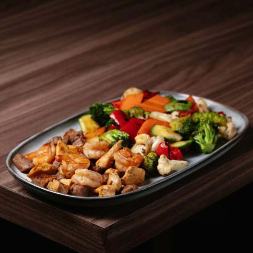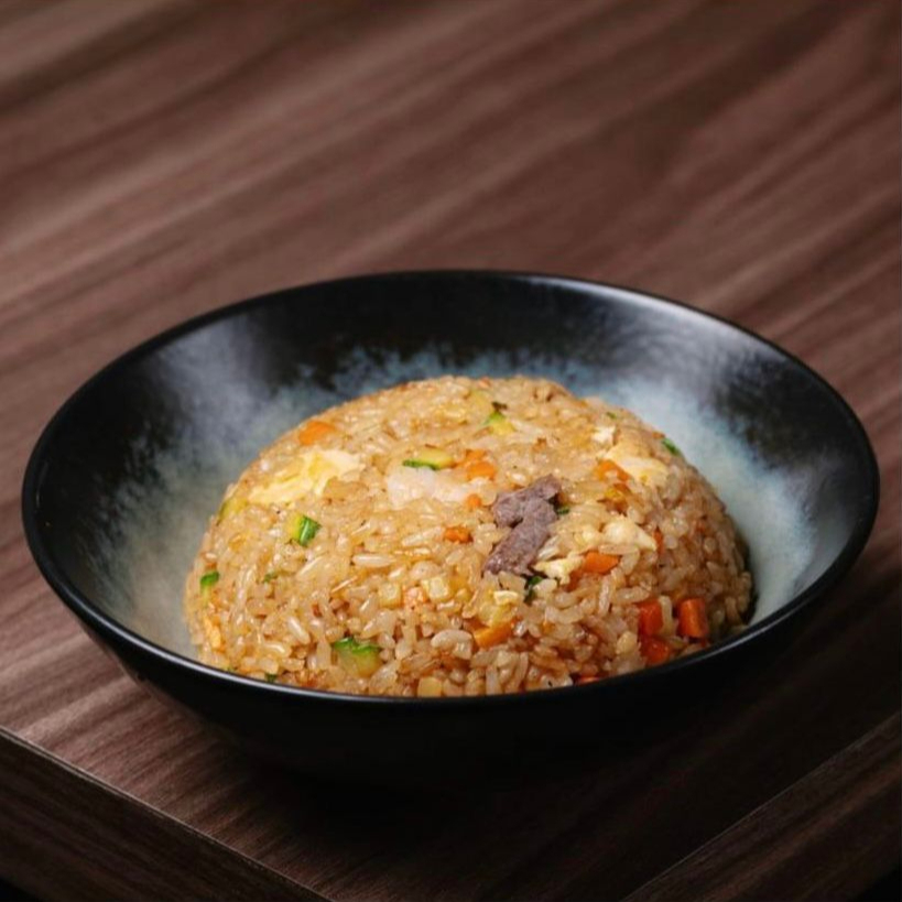 Yakimeshi especial mezclaldo con cangrejo , verduras , toques especiales de la casa y coronado con camarones tempura.