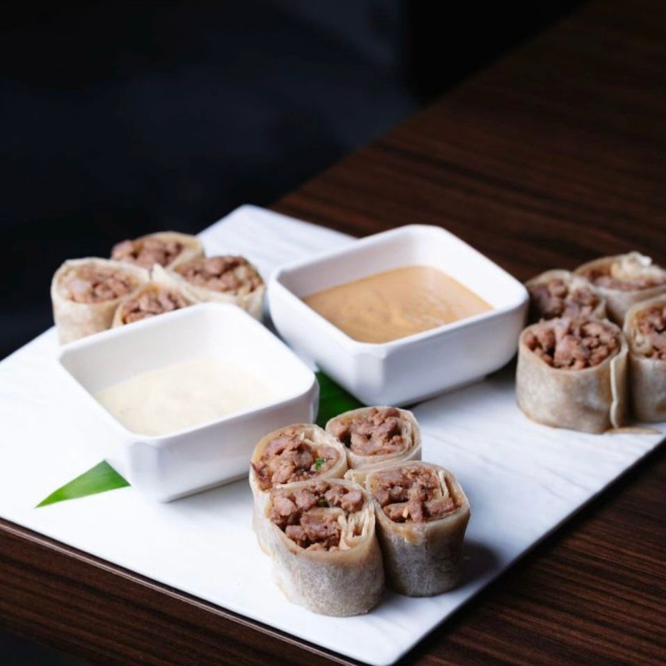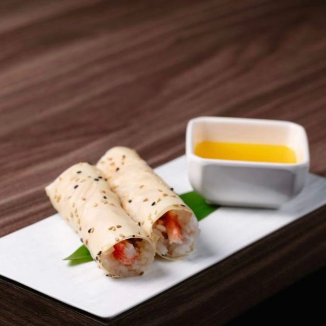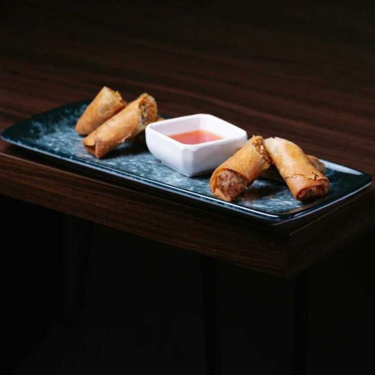 Clásicos y deliciosos rollos primavera rellenos con rib eye , verdura y jengibre. (3 piezas)