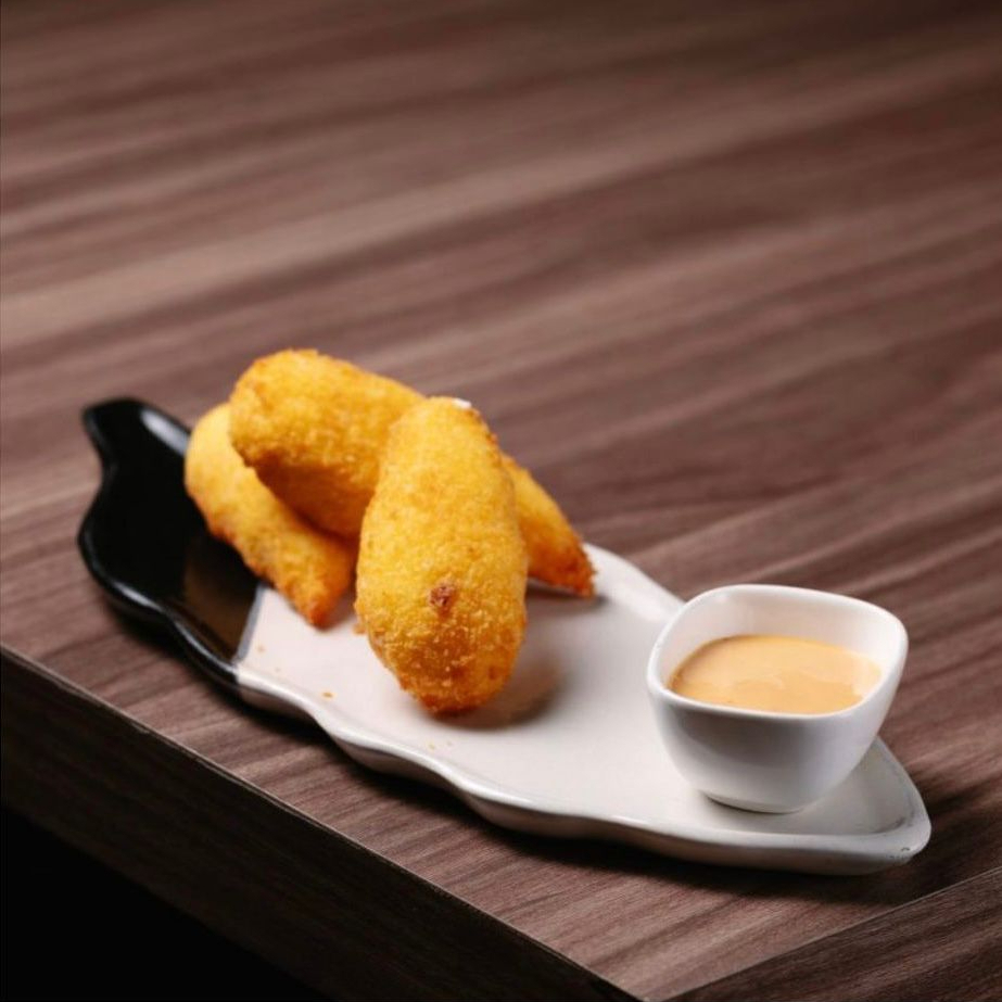 Camarones empanizados y rellenos con queso crema (3 piezas).