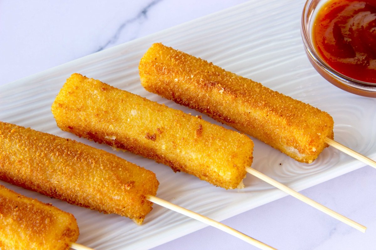 Rollo empanizado a elegir. Por fuera: queso chihuahua. (Tampico).