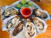 Queso crema, aguacate, tocino, ostión y camarón. Por fuera: queso amarillo.