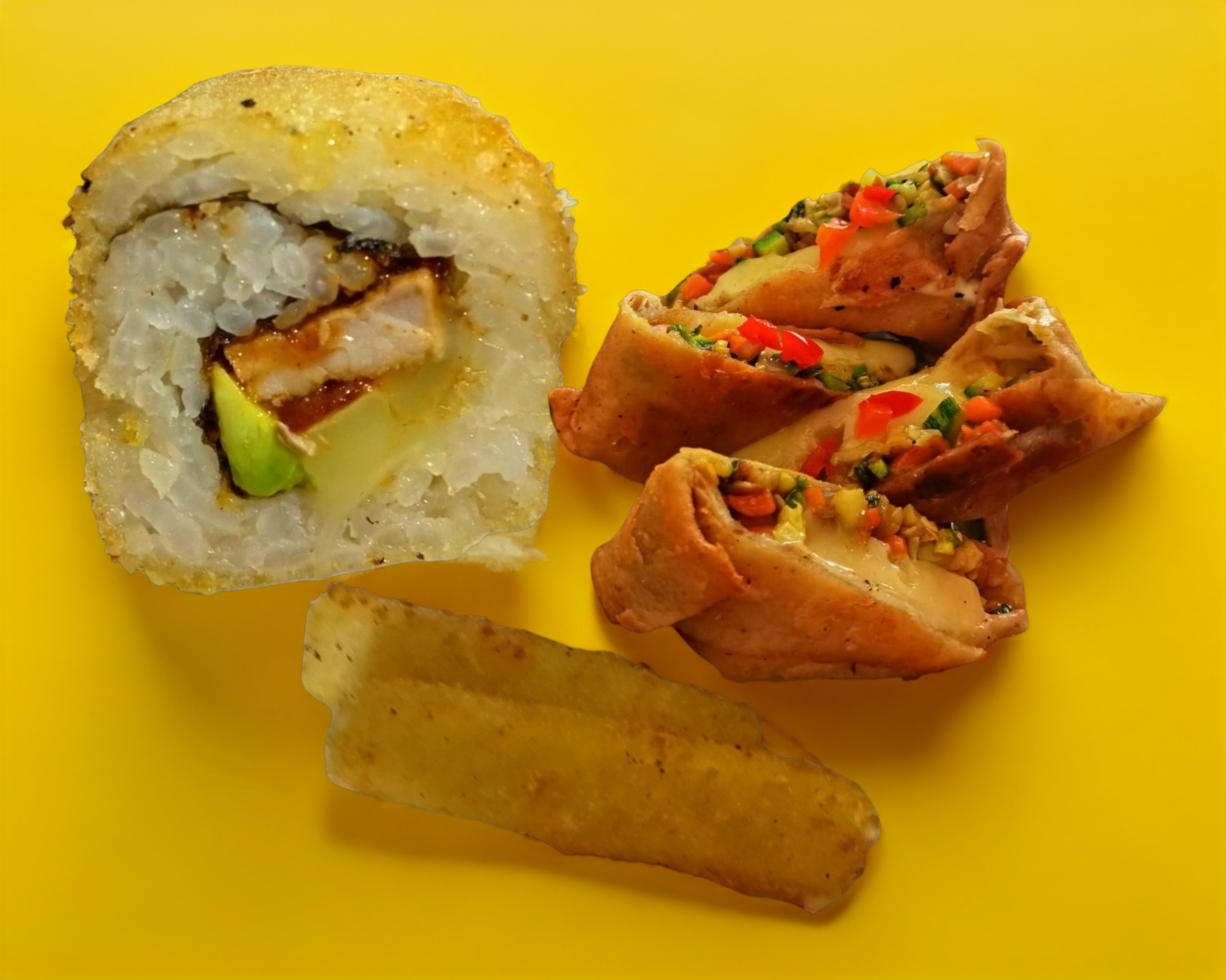 1 Chipo maki, 2 kushiagues, 2 rollos primavera.