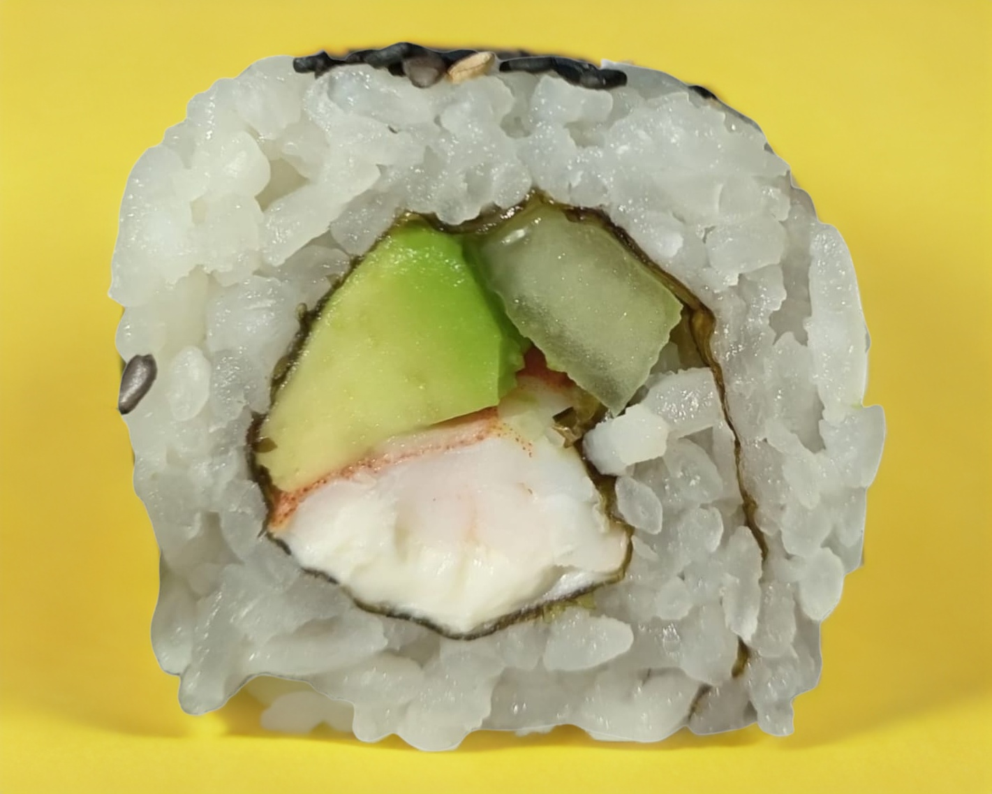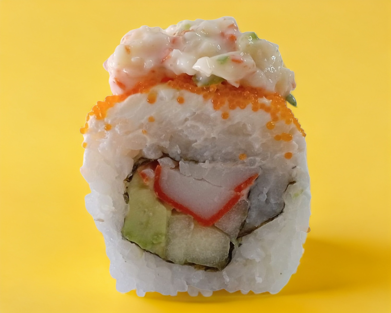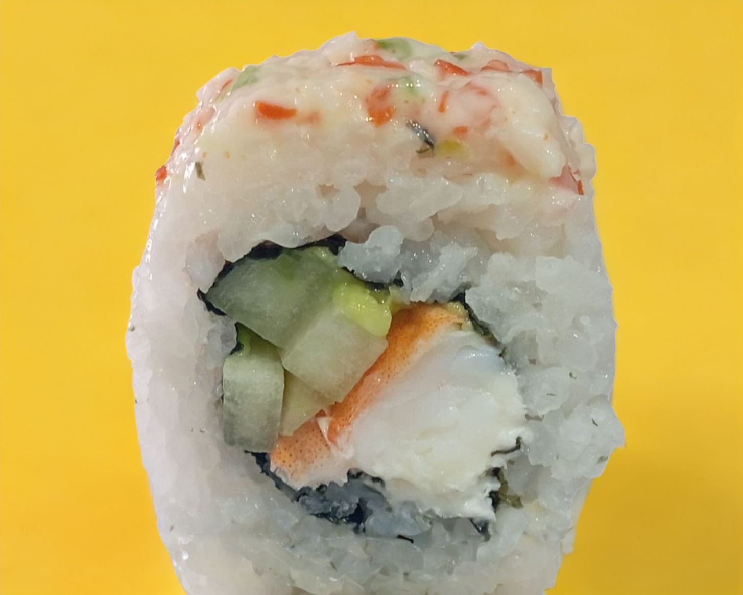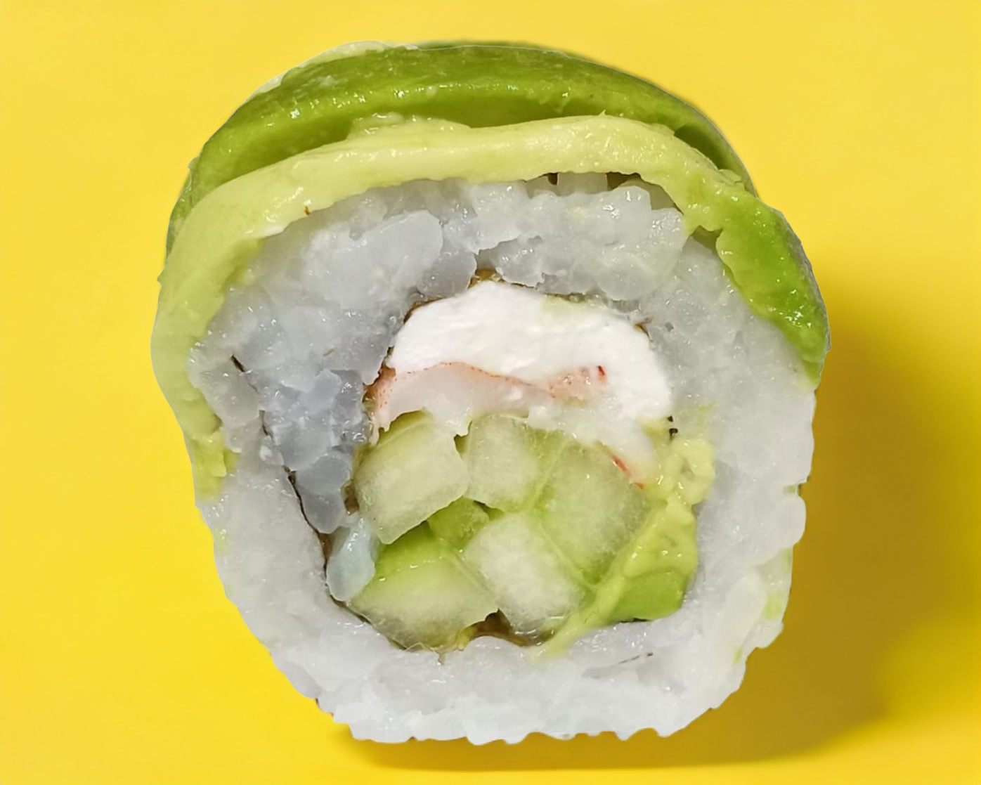 Dentro: philadelphia, aguacate, camarón y pepino. Fuera: pasta tampico.