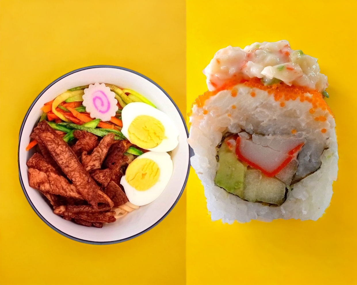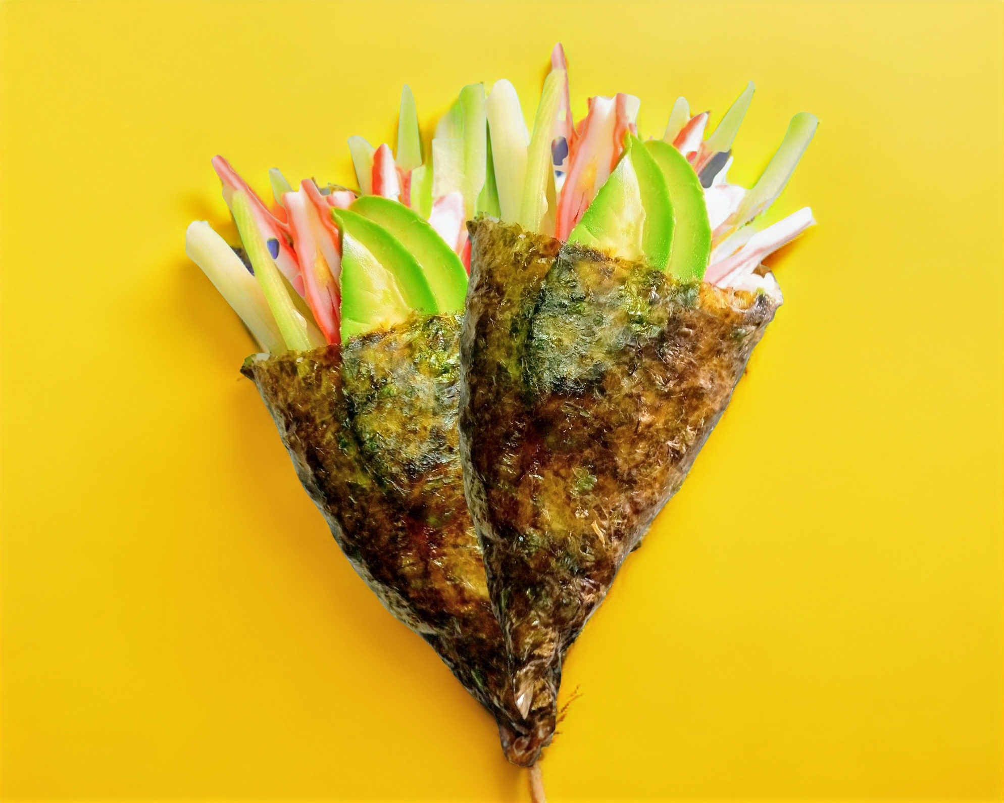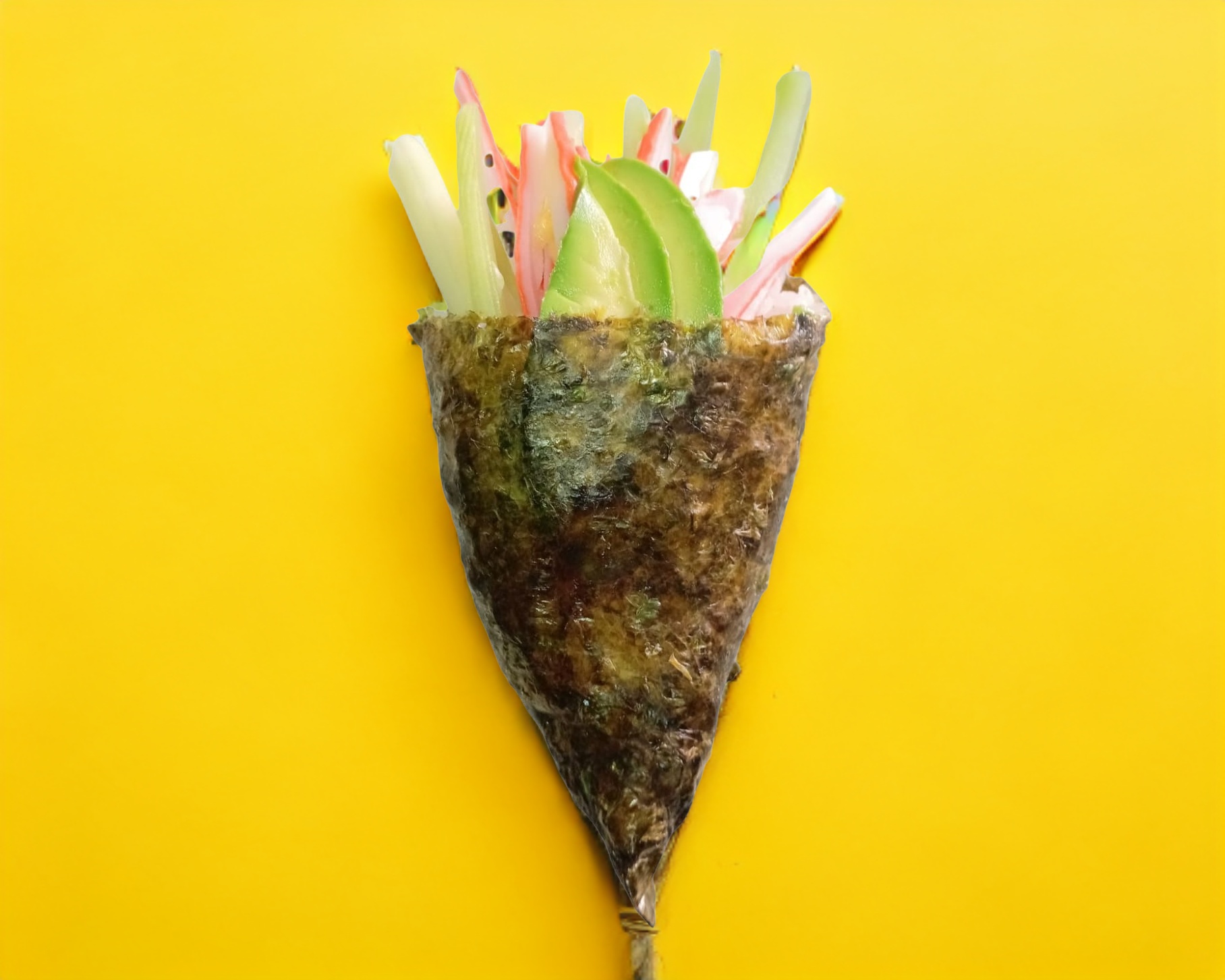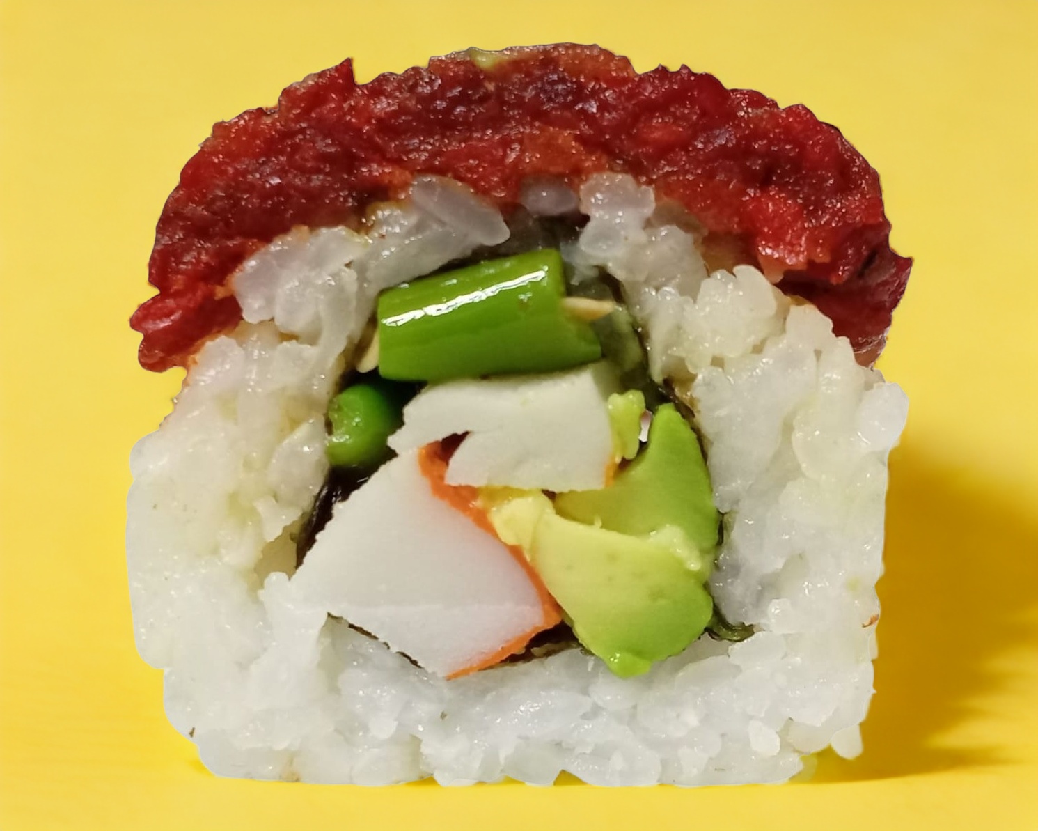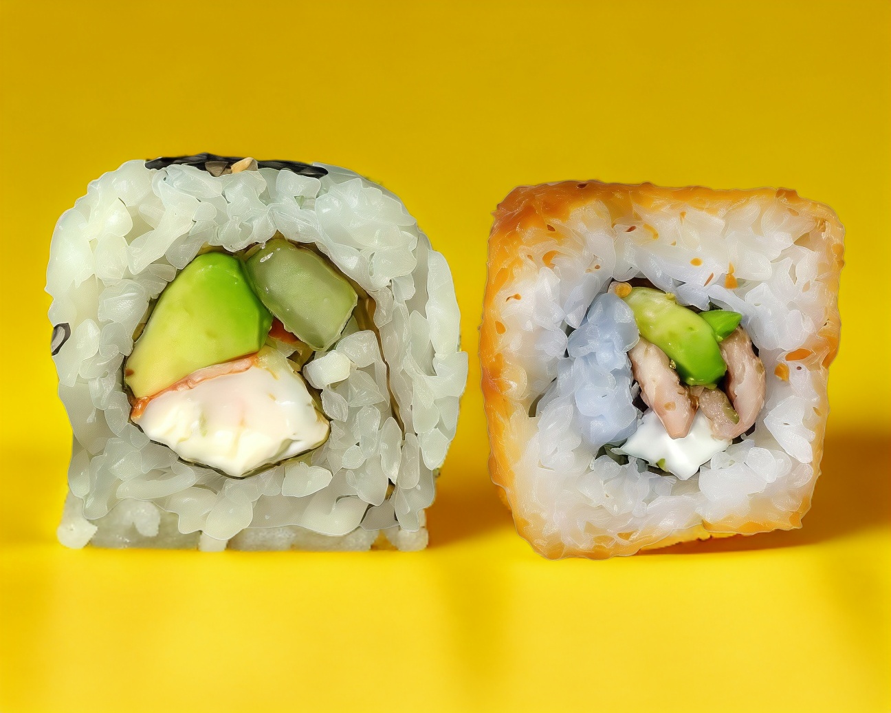 Dentro: surimi, aguacate y chile toreado. Fuera: chorizo y manchego.