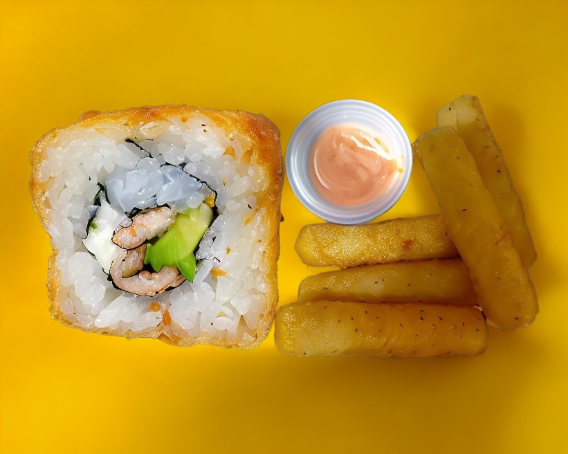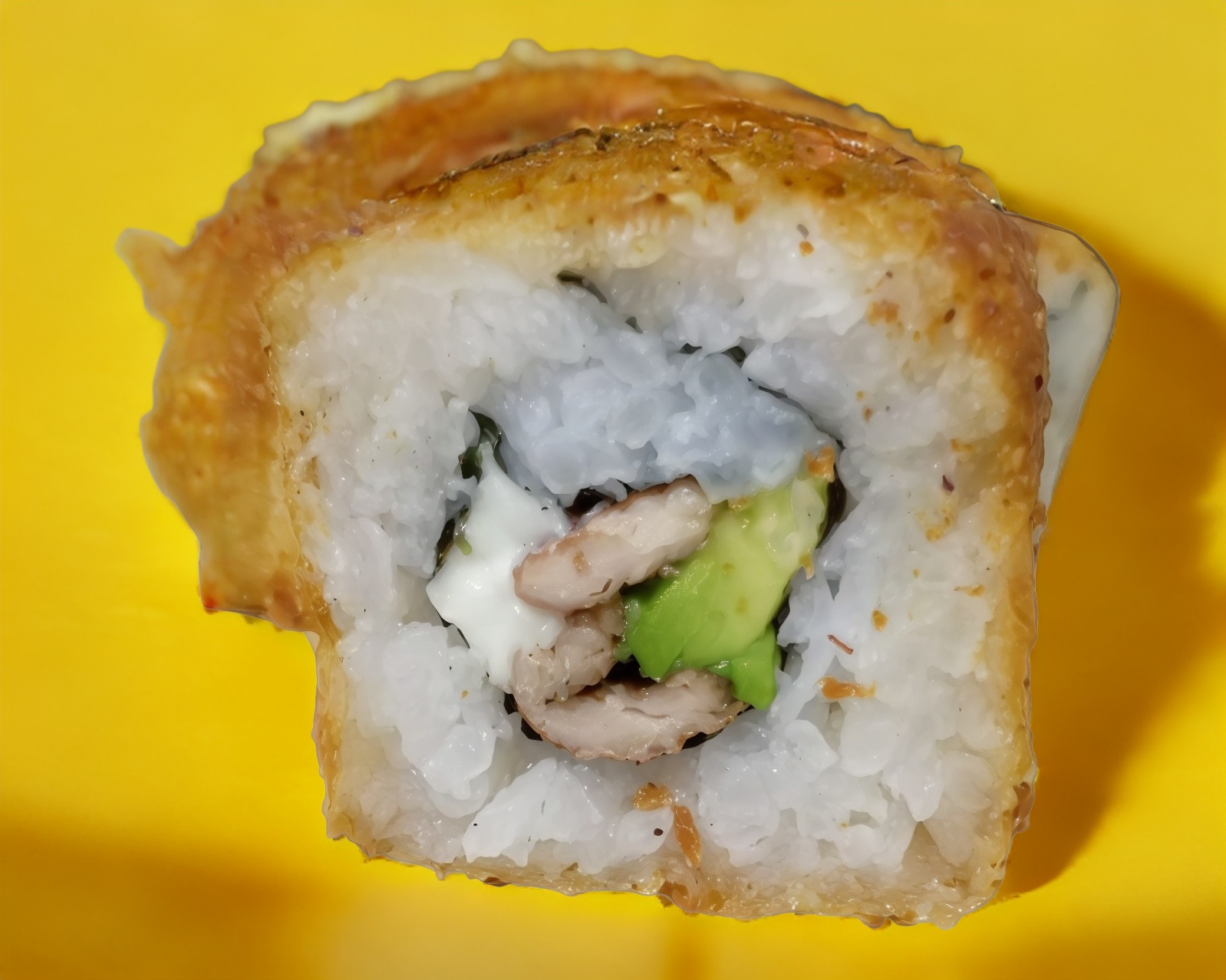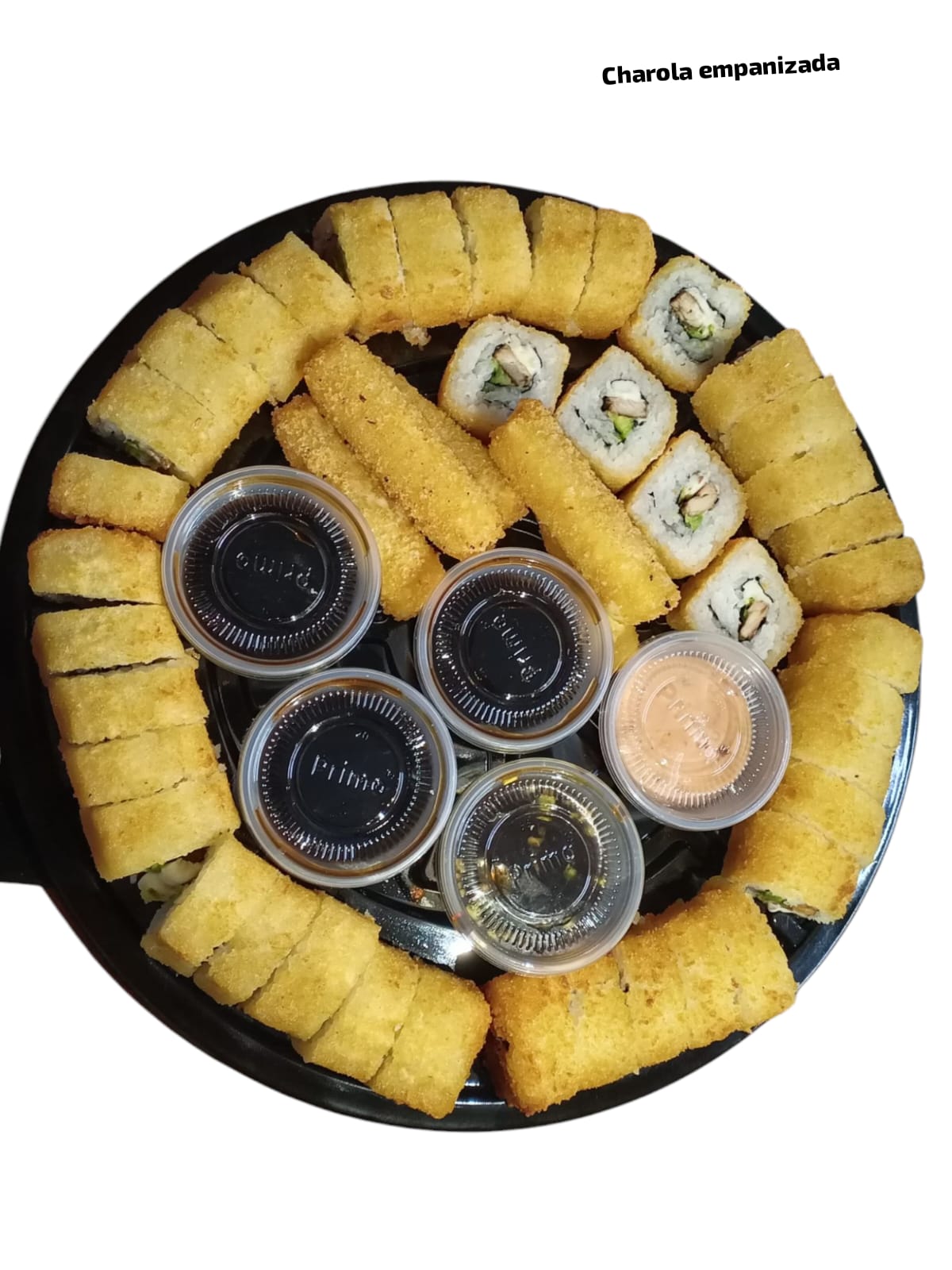 Dentro: camarón, chipotle, philadelphia y aguacate. Fuera: empanizado.