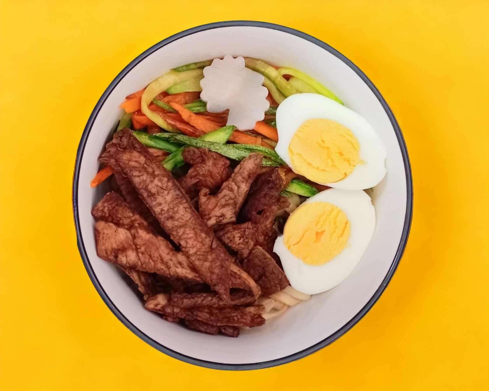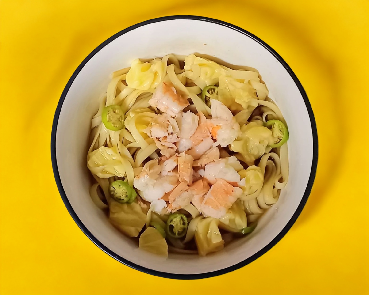 Pasta importada, base de miso, naruto, huevo y proteína pollo.