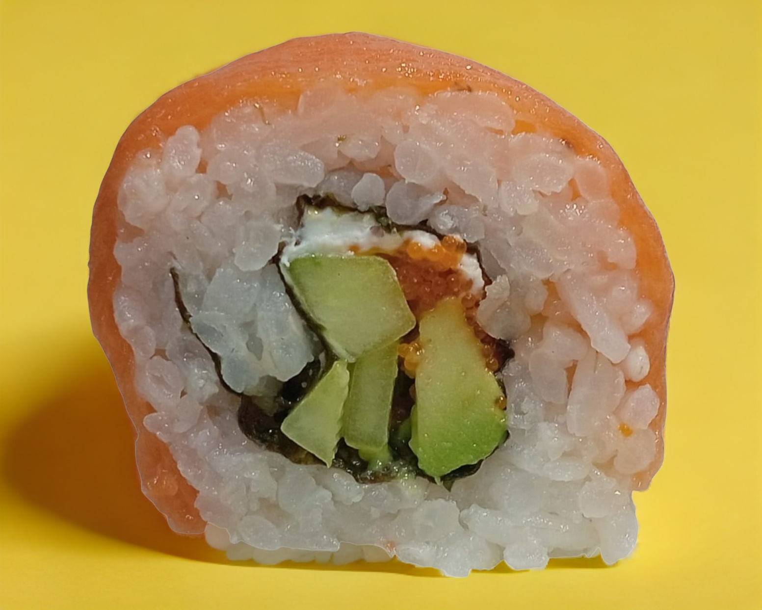 Dentro: surimi, aguacate y pepino. Fuera: philadelphia, massago y pasta tampico.