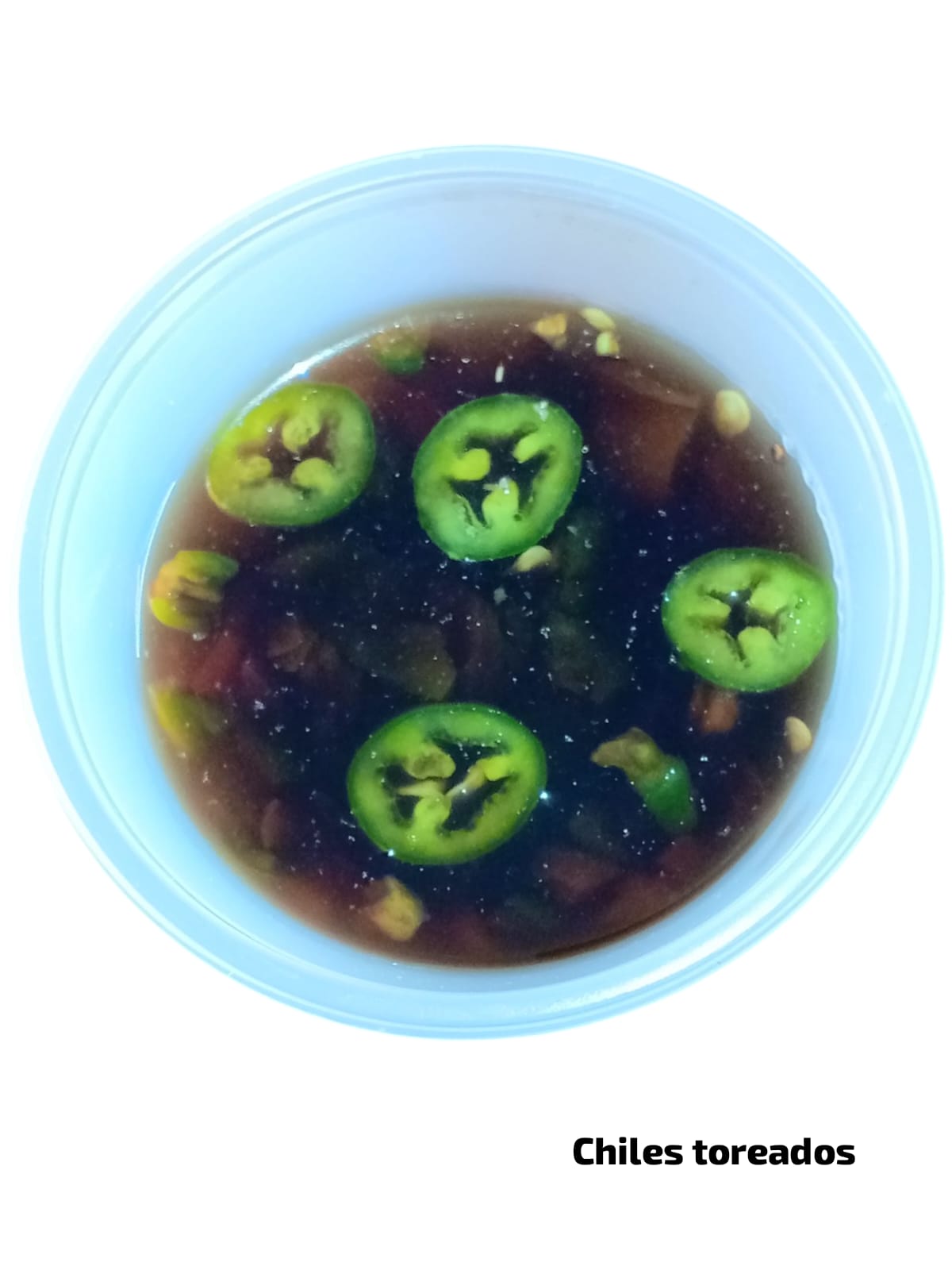 Arroz frito acompañado de zanahoria y calabaza, pasta tampico, chiles toreados y aguacates, pollo.