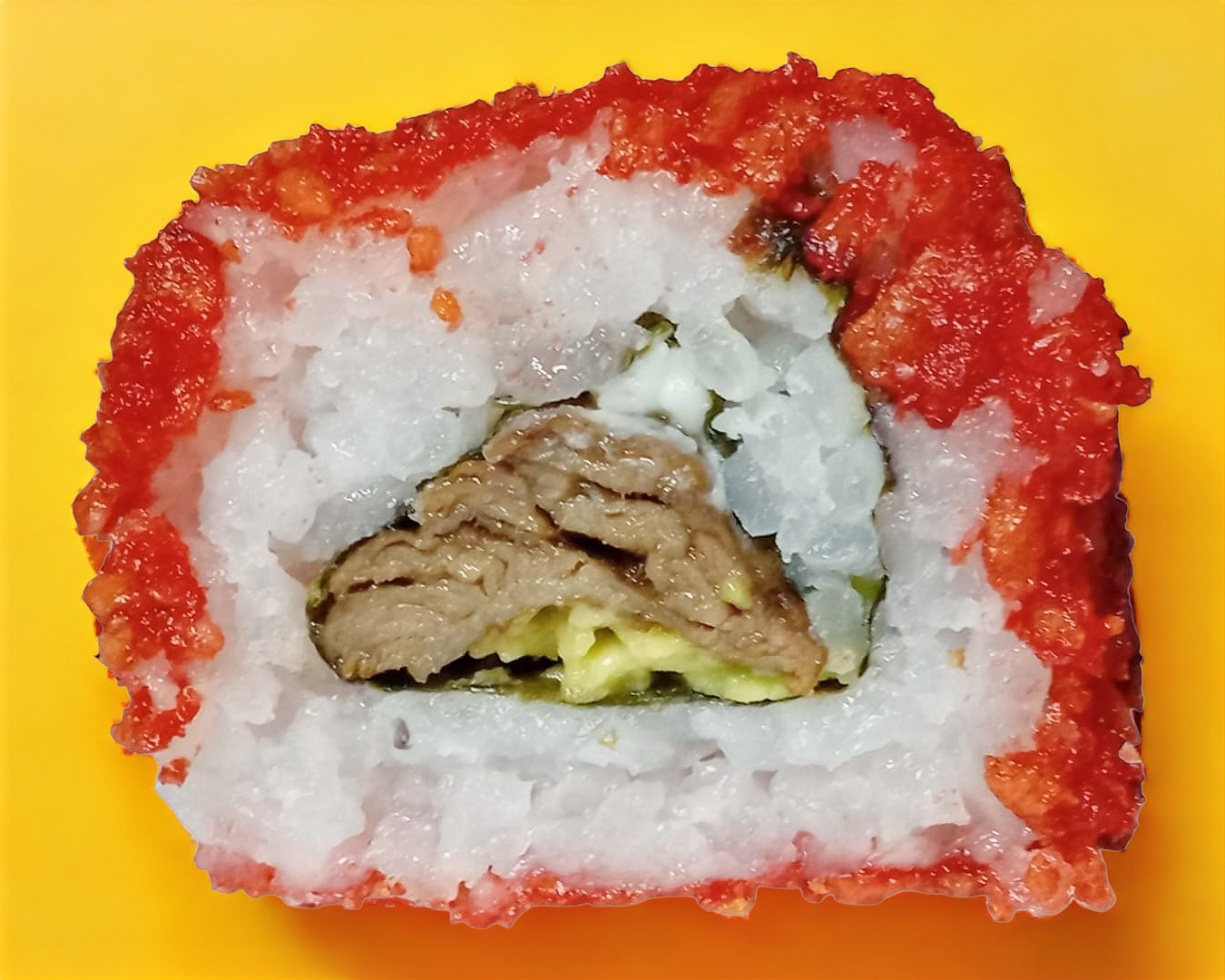 Dentro: philadelphia, carne y aguacate. Fuera: empanizado.