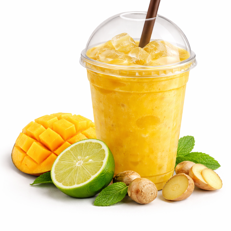 Bebida base hielo sabor mango con limón y jengibre