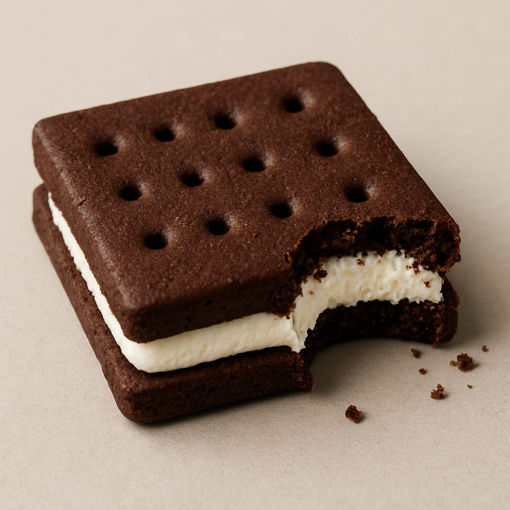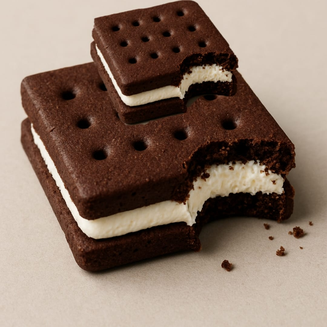¡Dos galletas suaves y dulces abrazando una bola de helado cremoso! Es como un sándwich… pero en versión postre. Crujiente por fuera, frío por dentro y 100% irresistible. Ideal para los que no pueden decidir entre galleta y helado… ¡aquí lo tienes todo en uno!