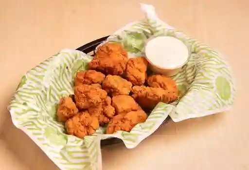 250 gr de trozos de pechuga de pollo rebosado, acompañados con el aderezo de tu elección