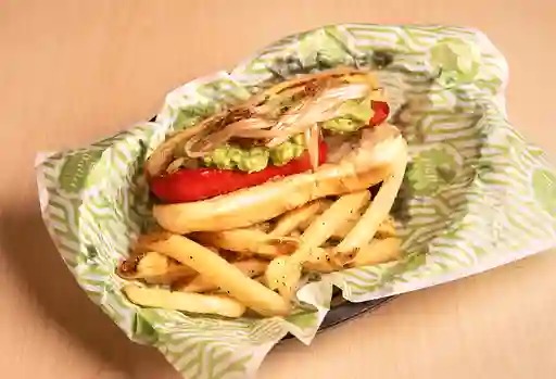 Salchicha jumbo frankfurt, 50gr de arrachera, aguacate, chiles serranos toreados y tocino.