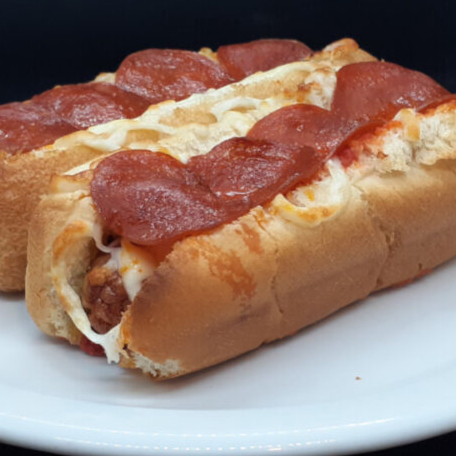 2 hot dog italiana, pan, salchicha, jamon, queso americano, queso manchego, pepperoni, jitomate, cebolla, rajas, capsut ,mostaza, mayonesa, papas ala francesa ind y 1 refresco ind