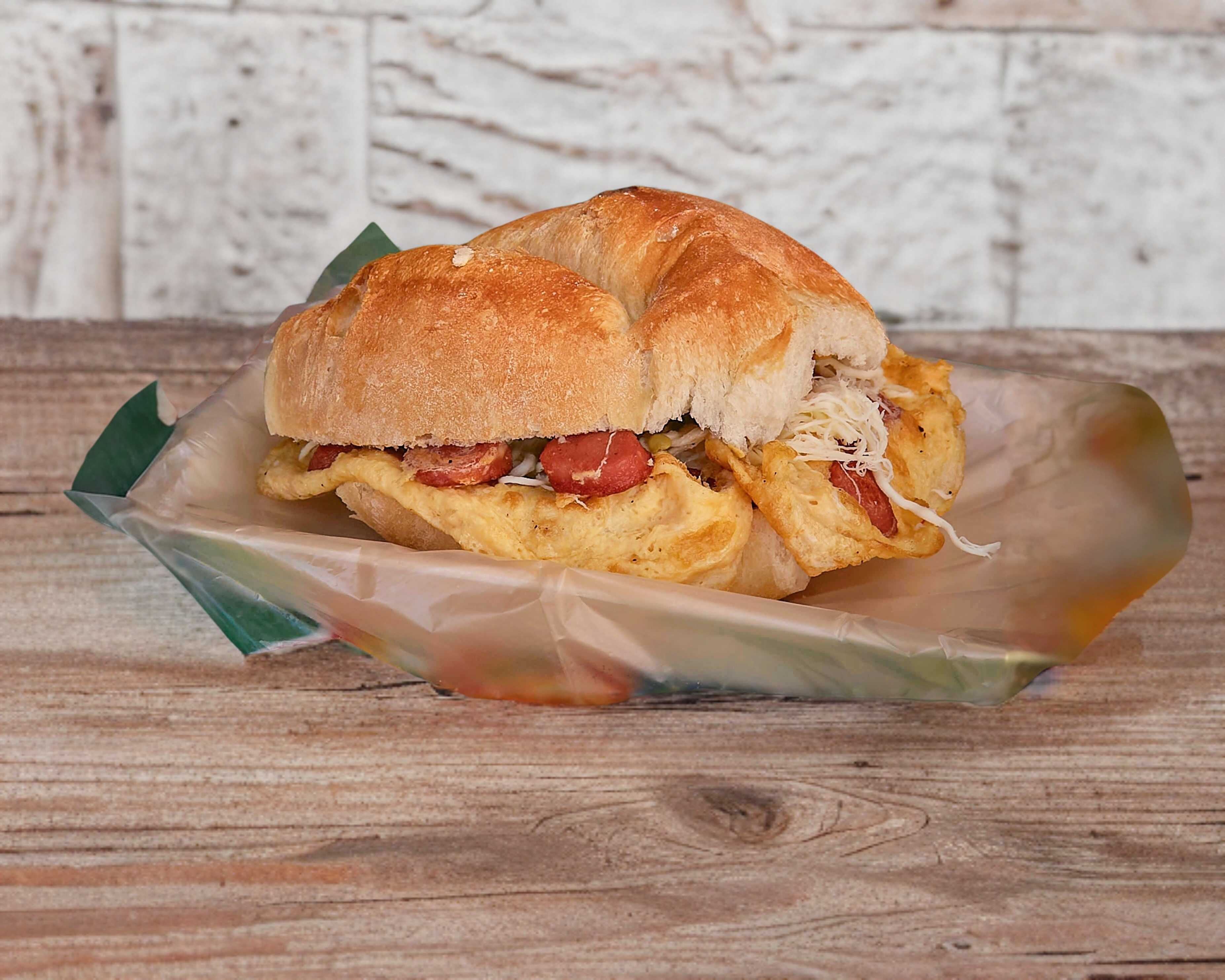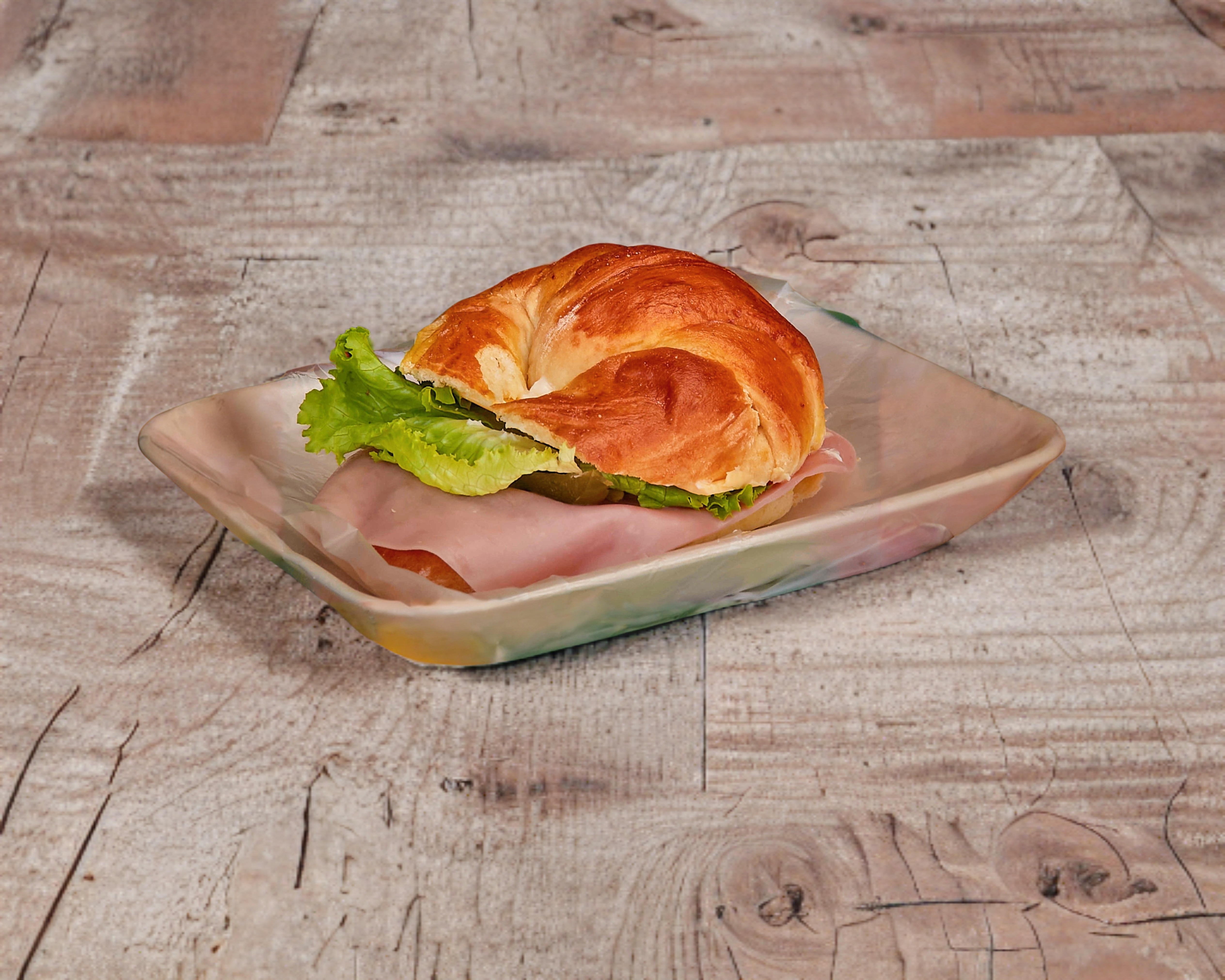 Croissant, jamón de pavo, lechuga, jitomate, cebolla, queso amarillo y mayonesa