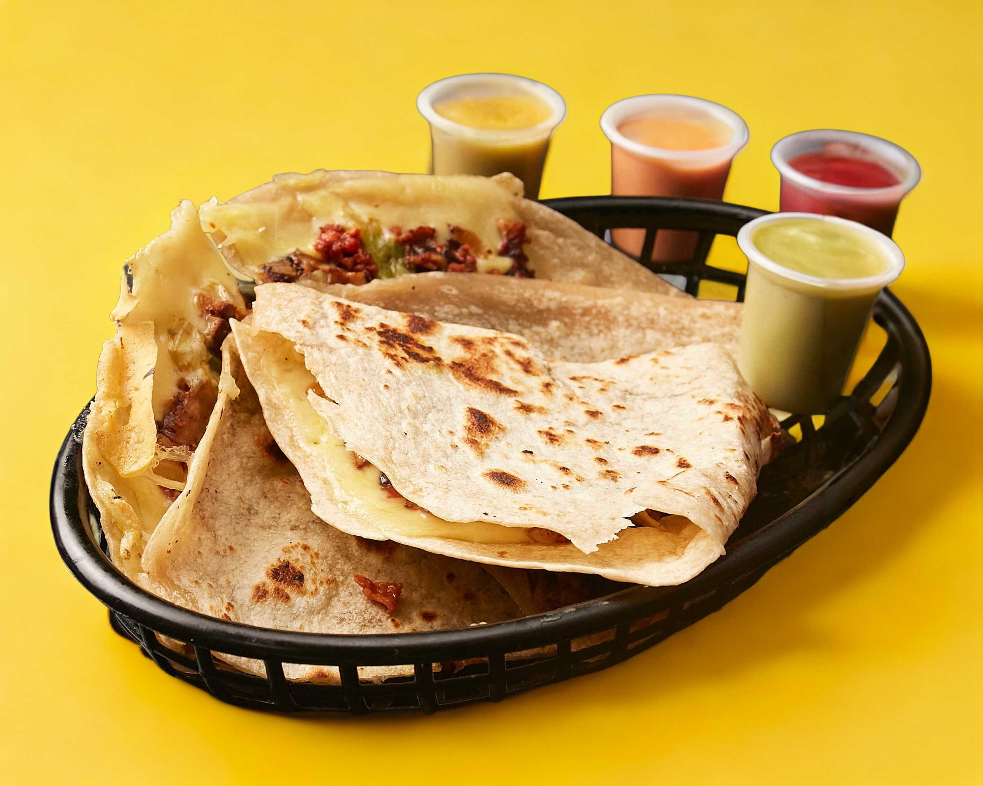 Orden de 4 tacos de carne asada con queso.