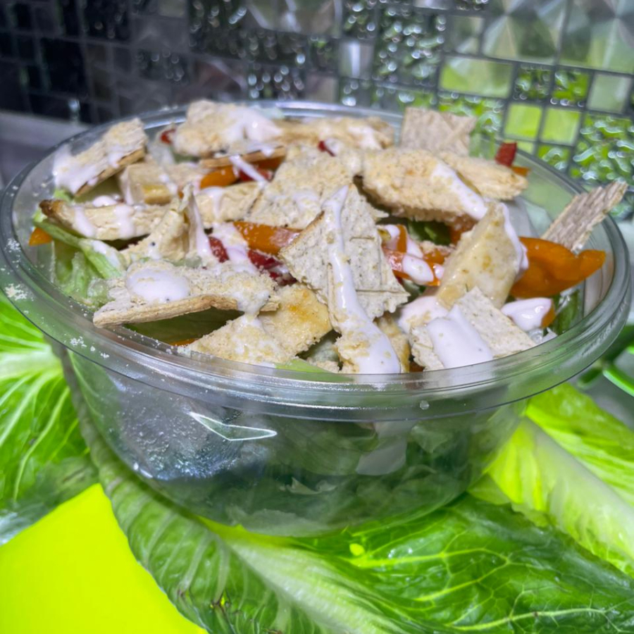 Mix de lechugas, espinaca, pimiento, pechuga, crotones, queso parmesano.