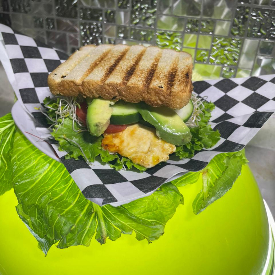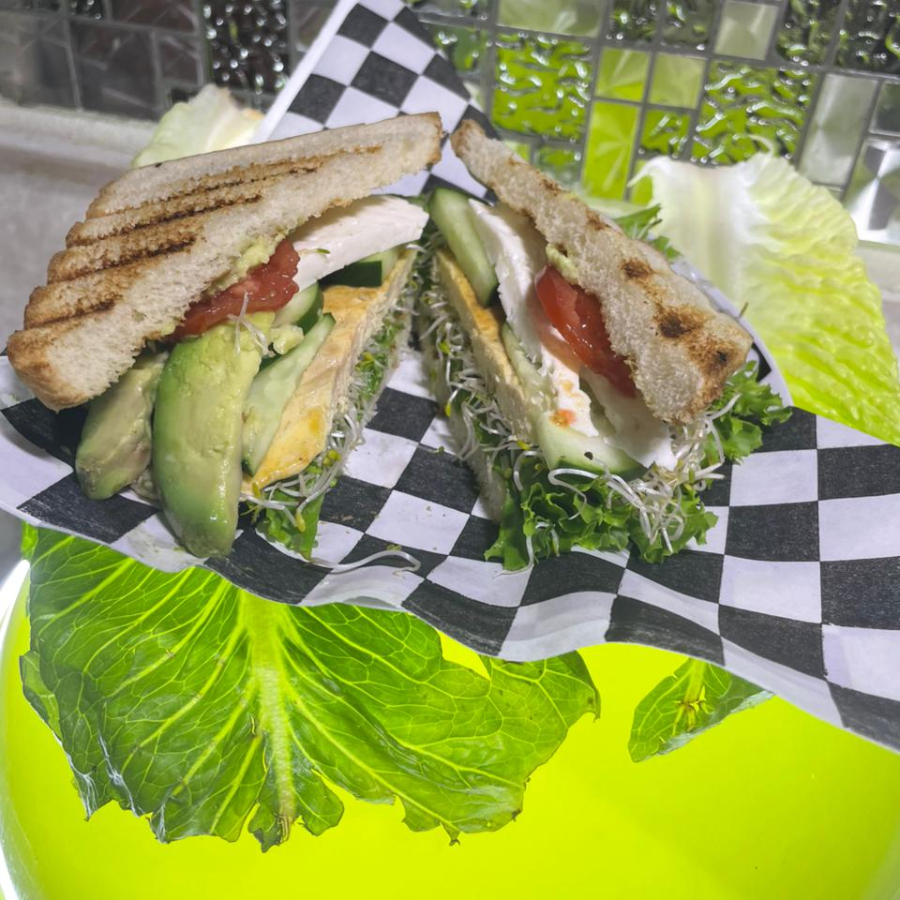 Atún, lechuga, germen de trigo, jitomate, aguacate, pepino, mayonesa y queso panela.