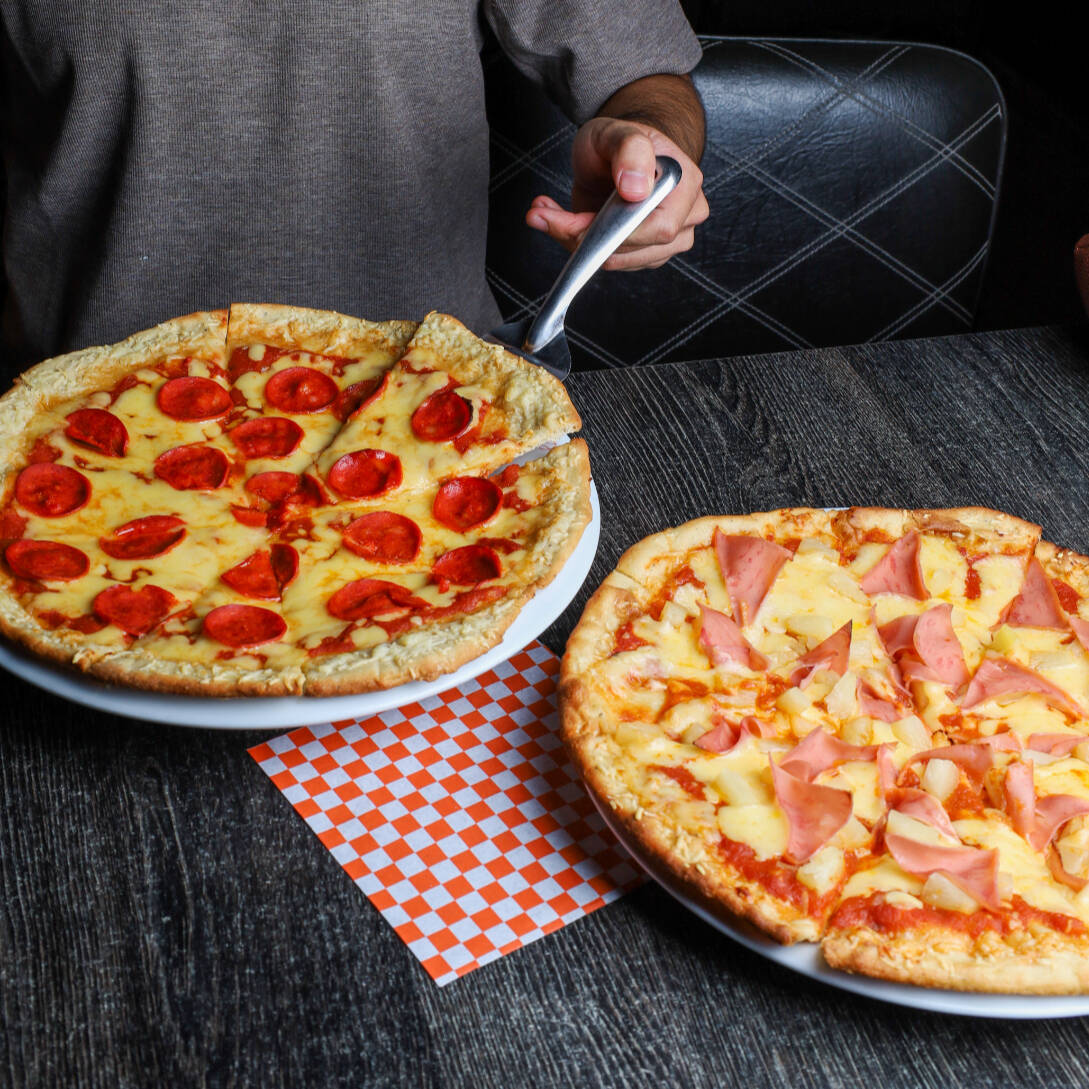 Deliciosa Pizza con Pepperoni y nuestra mezcla de Quesos de la casa. Masa 100% hecha en casa. Pizza 8 Porciones. Quesos de la casa: Cheddar, Mozarrella