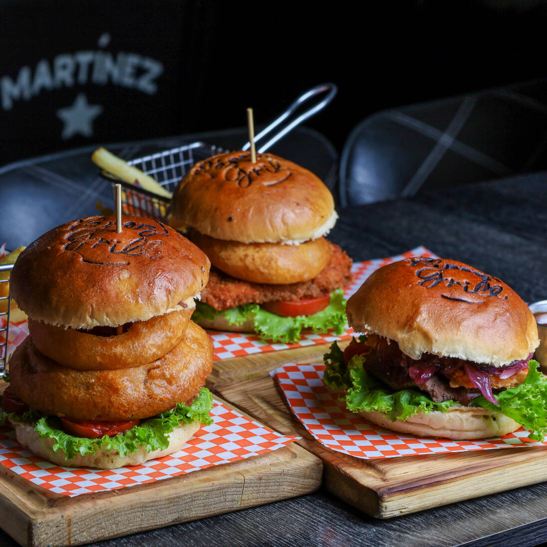 Un clásico de la casa. Carne 100% Arrachera de res, sobre Queso Monterrey Jack, Cebolla, Blue Cheese, Guacamole dentro de nuestro exquisito pan brioche (100 GRAMOS)
