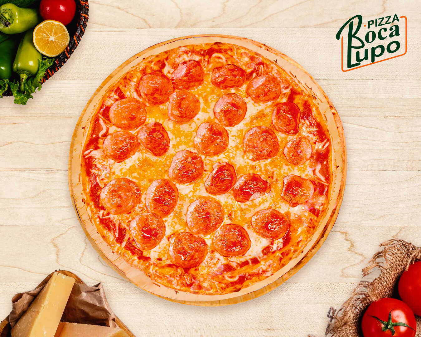 Pizza Grande de 8 rebanadas y 35 cm de diamentro.