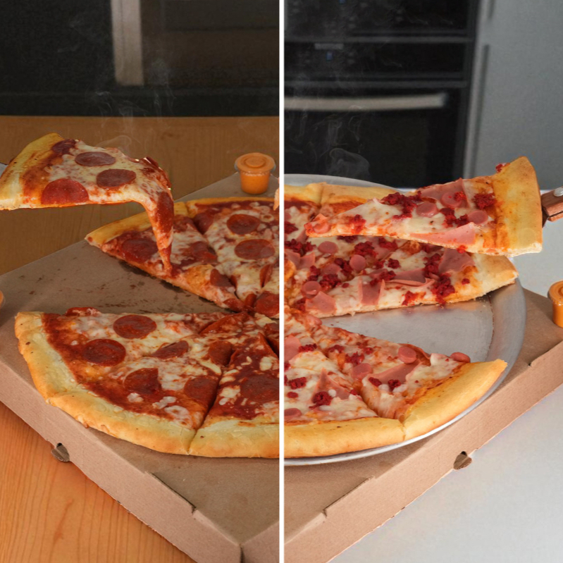1 rebanada pepperoni y 1 rebanada de carnes frías.
