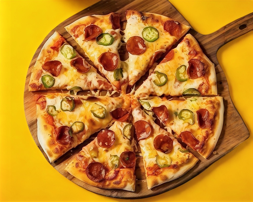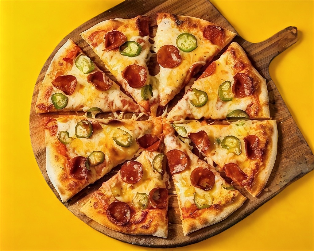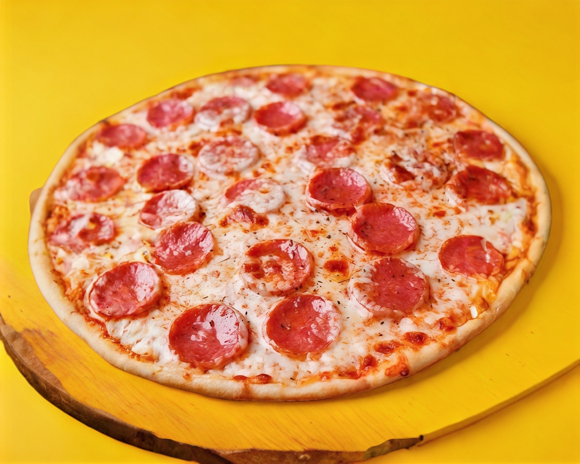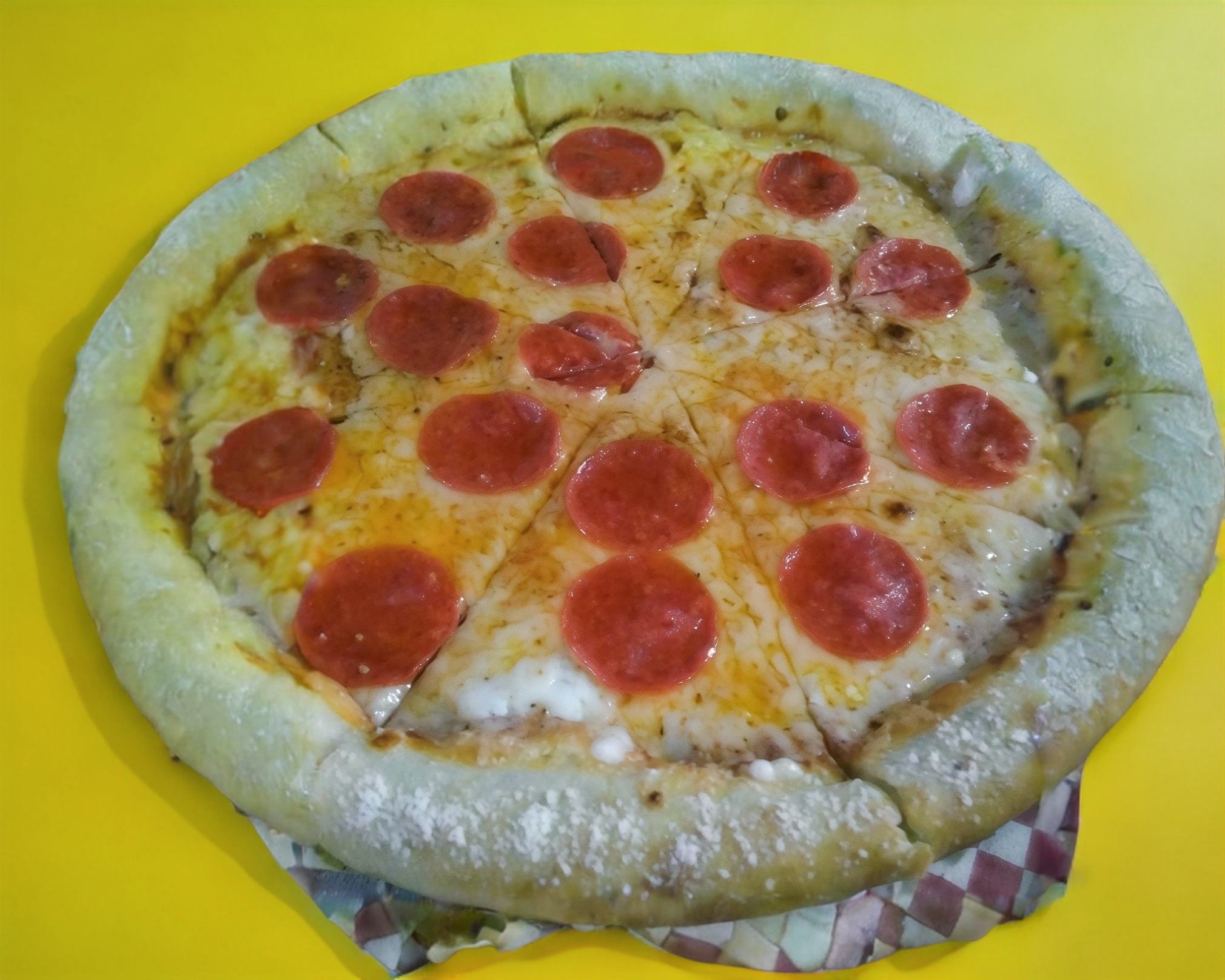 salsa de jitomate, queso mozarella, pepperoni 35cm 8 rebanadas