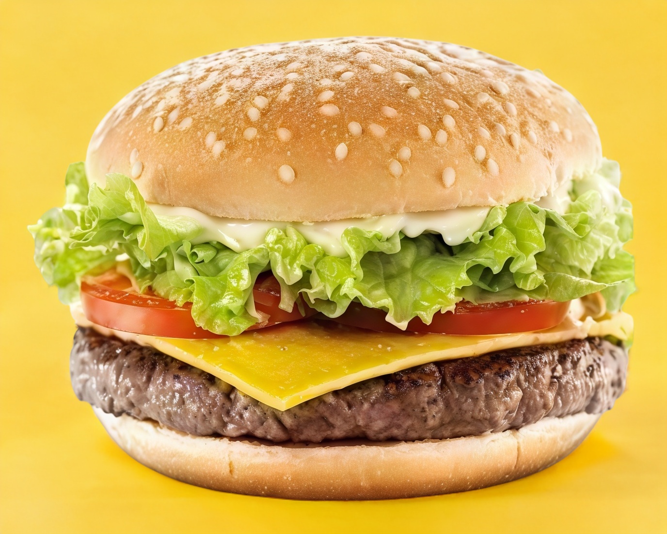 carne, lechuga, cebolla, mayonesa, mostaza ,jitomate y queso