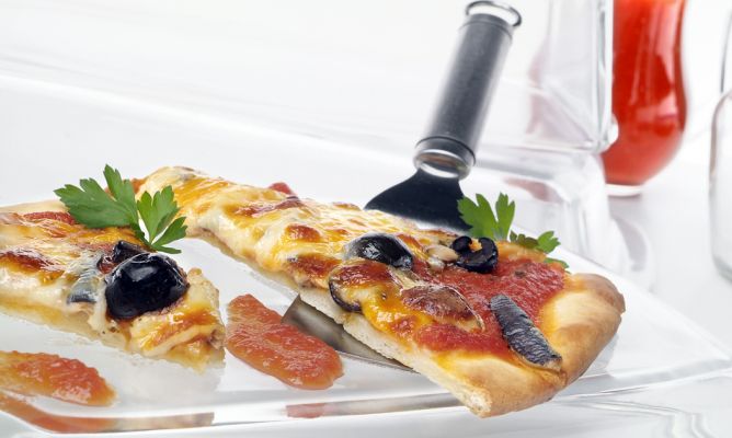 Preparada con pepperoni, salchicha, pimiento y aceituna