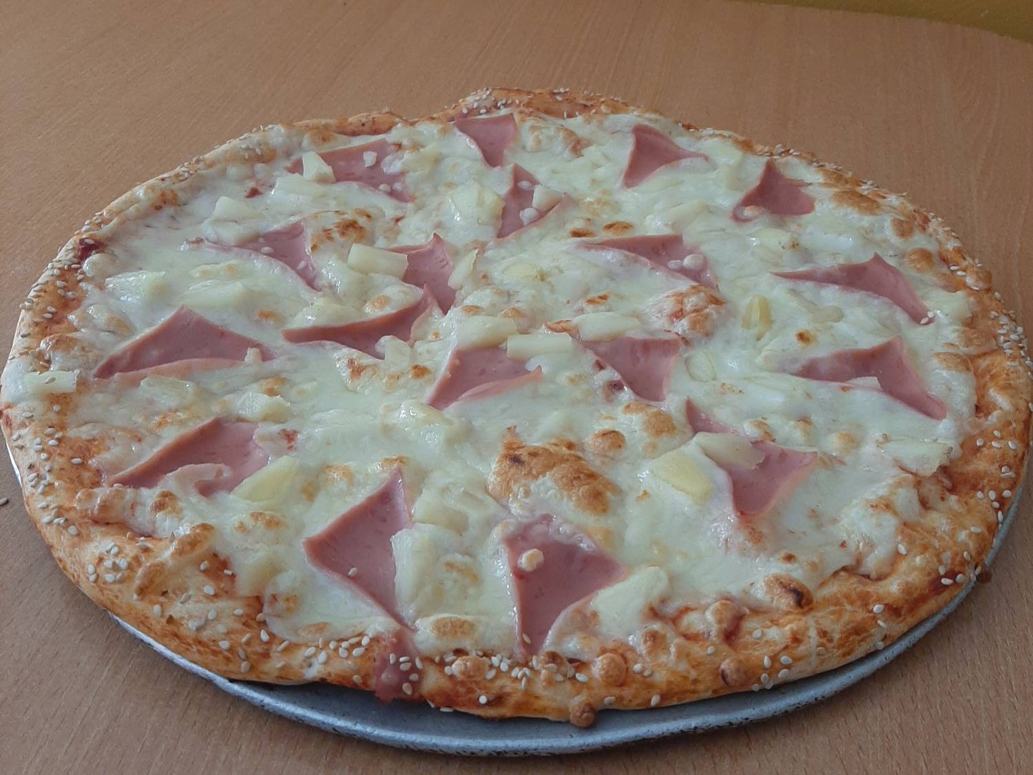 Preparada con jamon, pepperoni, champiñón, pimiento y piña