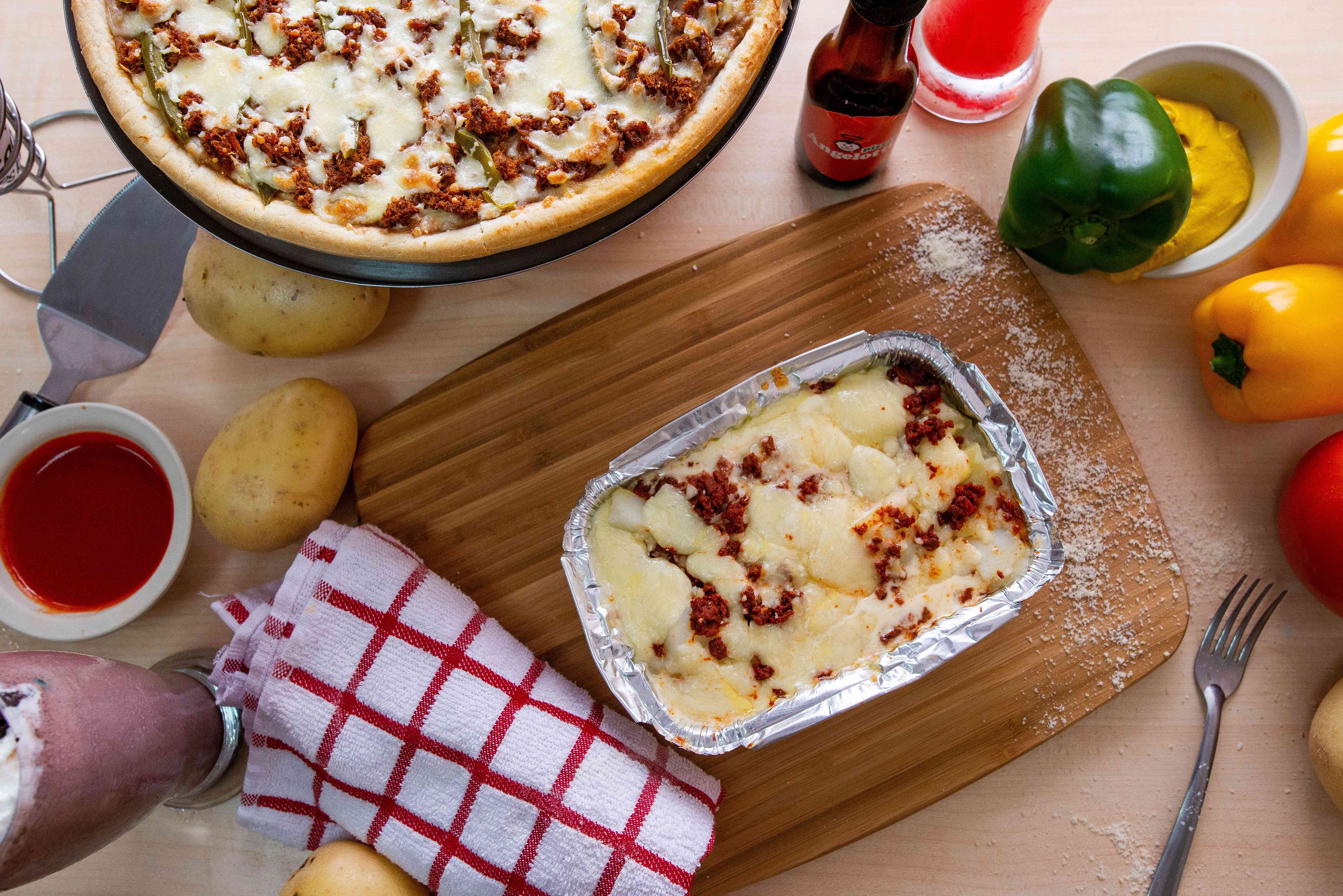 1 Pizza Grande + 1 espaguetti o 1 papa al horno + 1 refrescod e 1.5