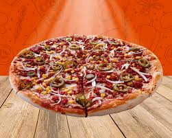 Jamón, pepperoni, chorizo, queso manchego y salsa de tomate.