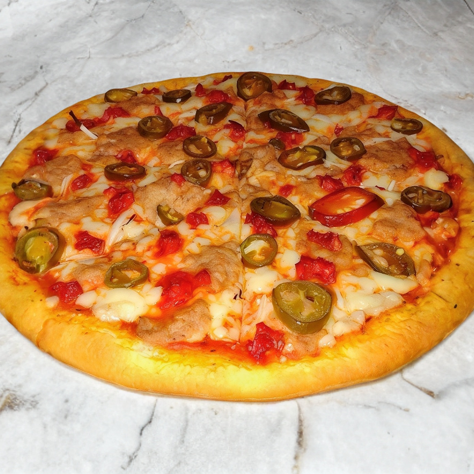 Pizza grande de 33 cm, cebolla, frijol, jalapeño y chorizo.
